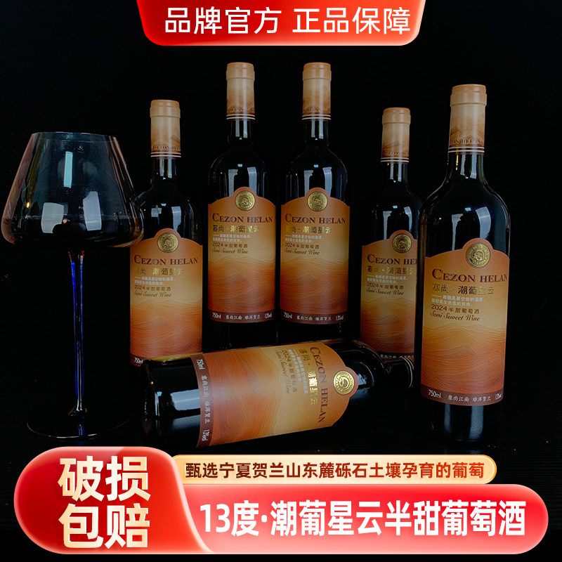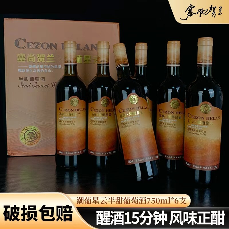 宁夏红酒半甜红葡萄酒750mlx6瓶13度微醺女士睡前晚安酒酒庄