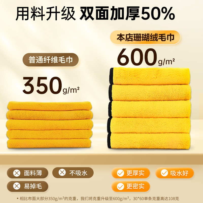 洗车毛巾双面珊瑚绒加厚吸水专用擦车巾汽车抹布大号速干擦车毛巾