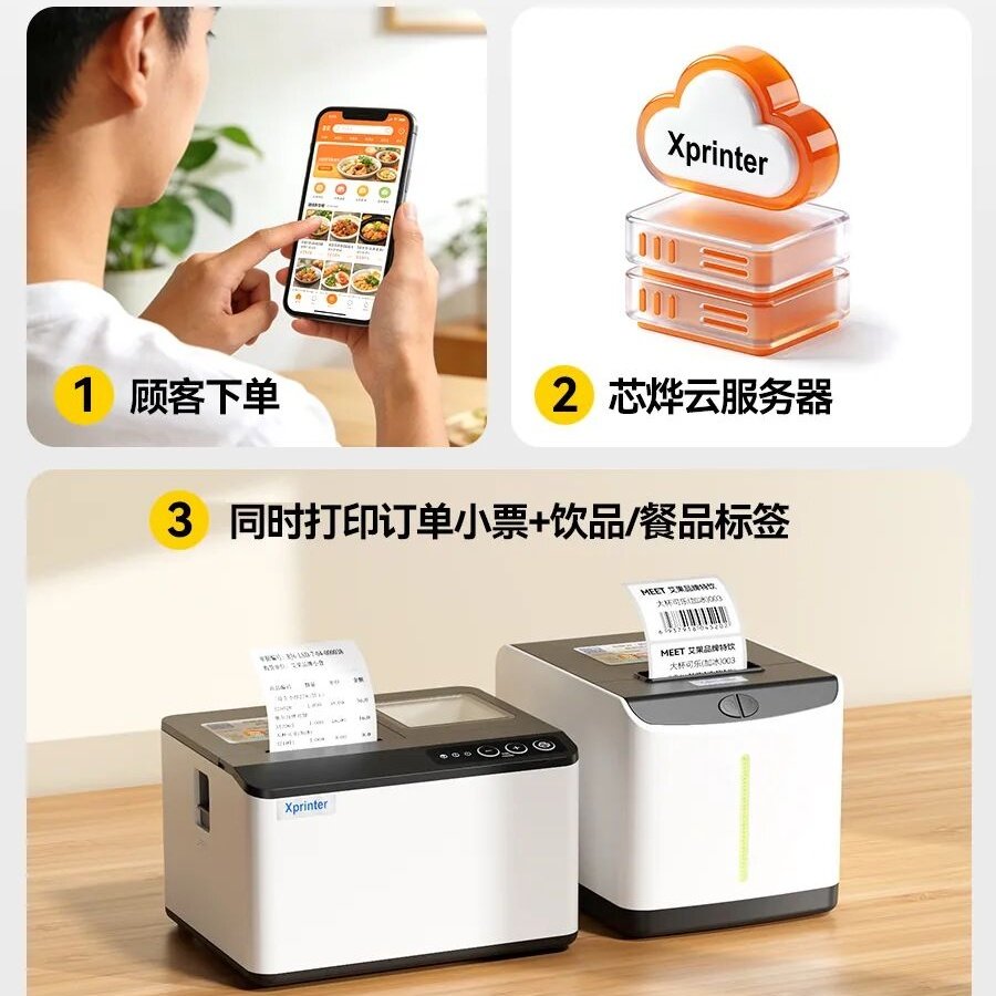 芯烨T503/C503云打印出餐一体机美团淘宝闪购饿了么京东多平台外卖餐饮自动接单团购验券热敏小票扫码出餐