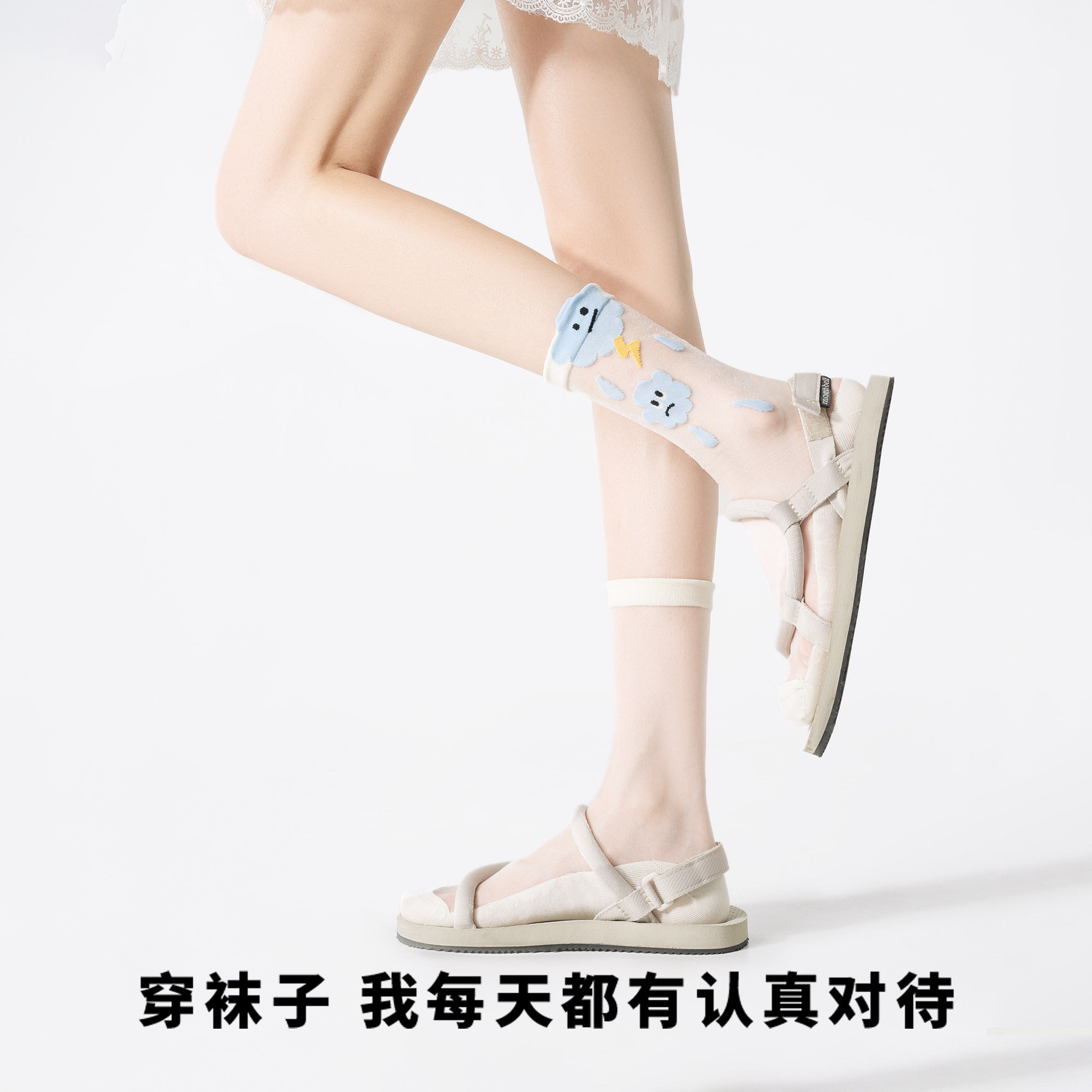 江狗玻璃丝袜子女夏季薄款透气中筒袜可爱配凉鞋洞洞鞋透明水晶袜