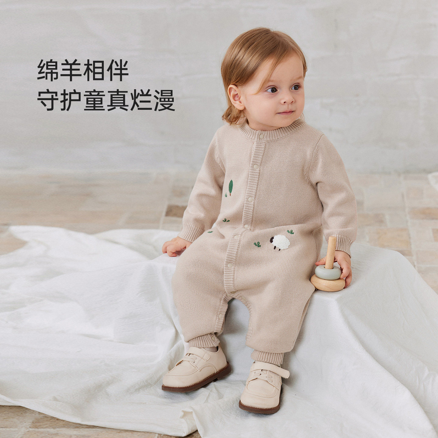 babycare冬季保暖山茶花连体衣宝宝包屁衣新生儿爬服外出婴儿衣服