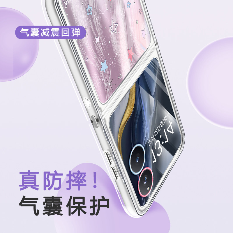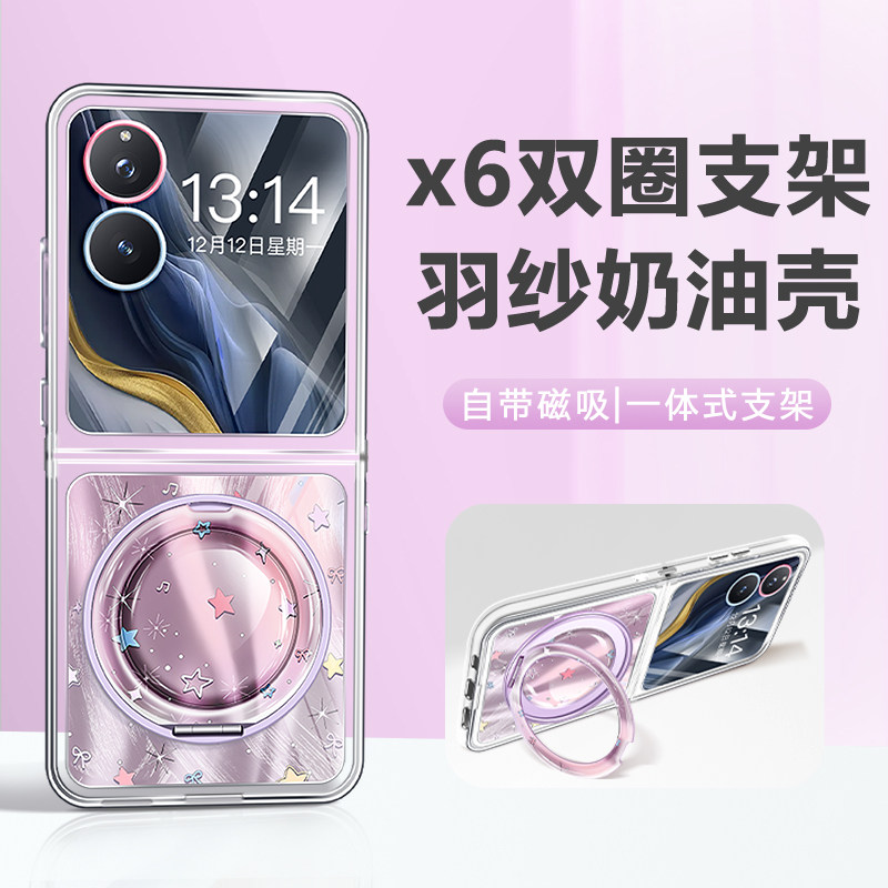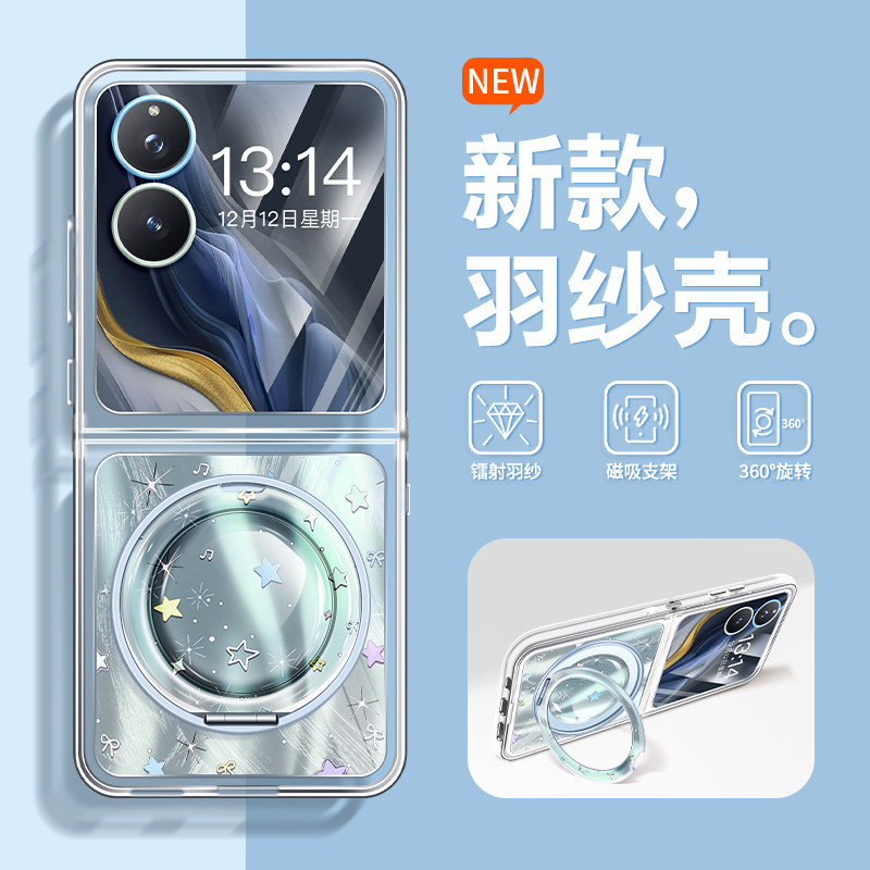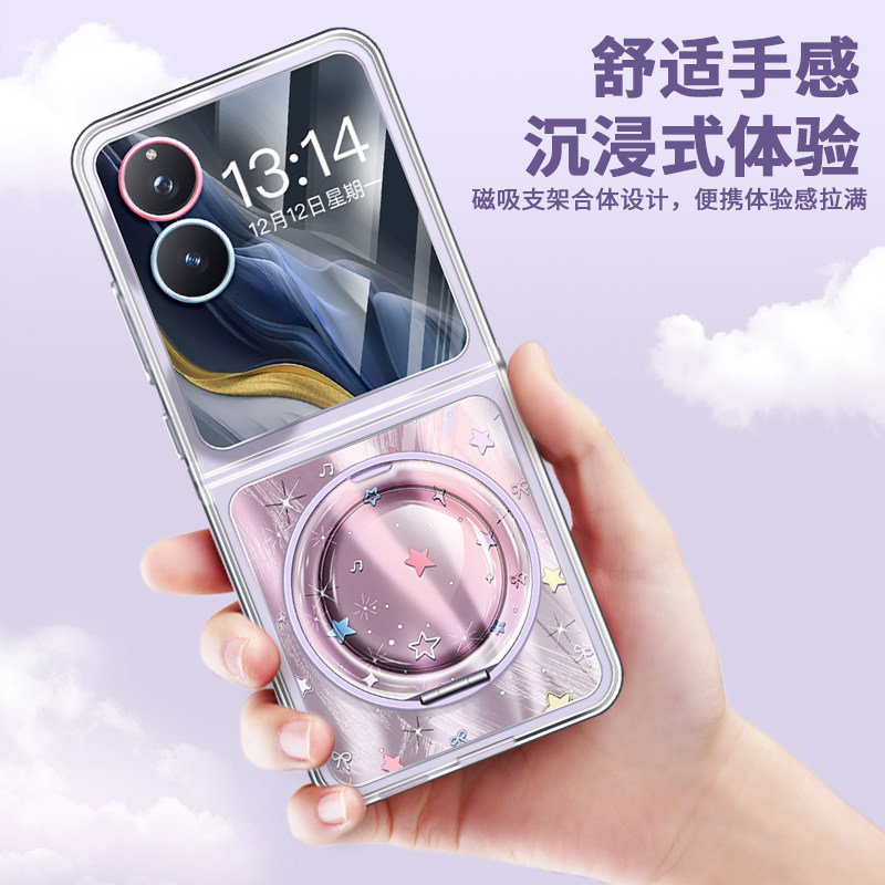日韩沃艾尼适用小米mixflip2手机壳新款少女心卡通羽纱华为pocket2渐变带支架三星zflip7小众薄OPPO折叠荣耀