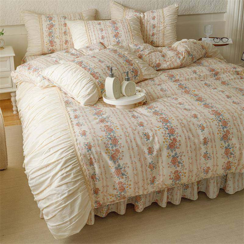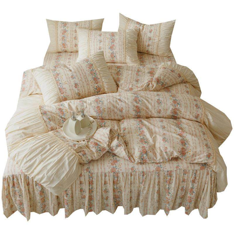 2025新款法式小清新少女风全棉印花床单款床裙款四件套