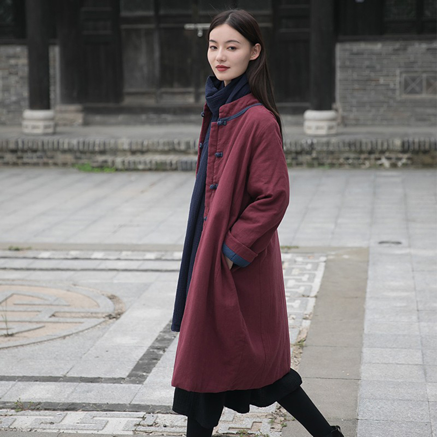 国风棉衣女冬新款民族风盘扣复古文艺夹棉外套宽松加厚中长款棉袄