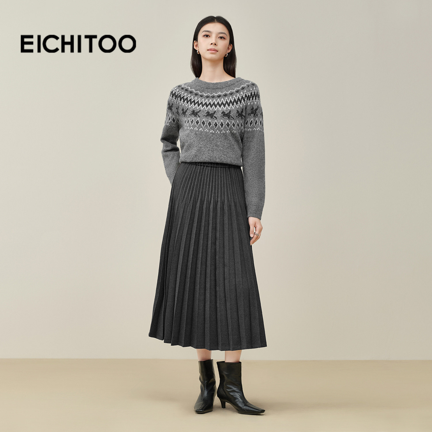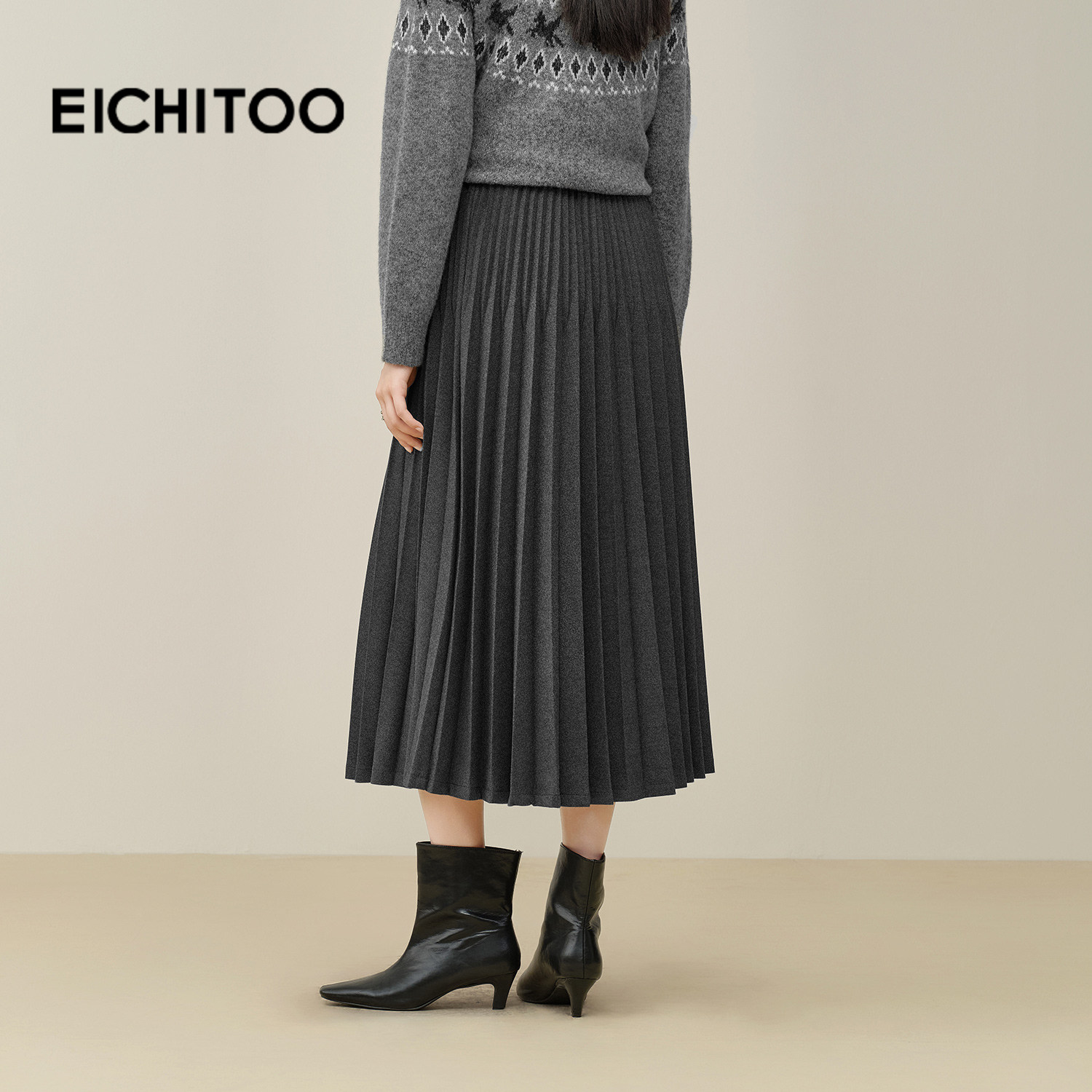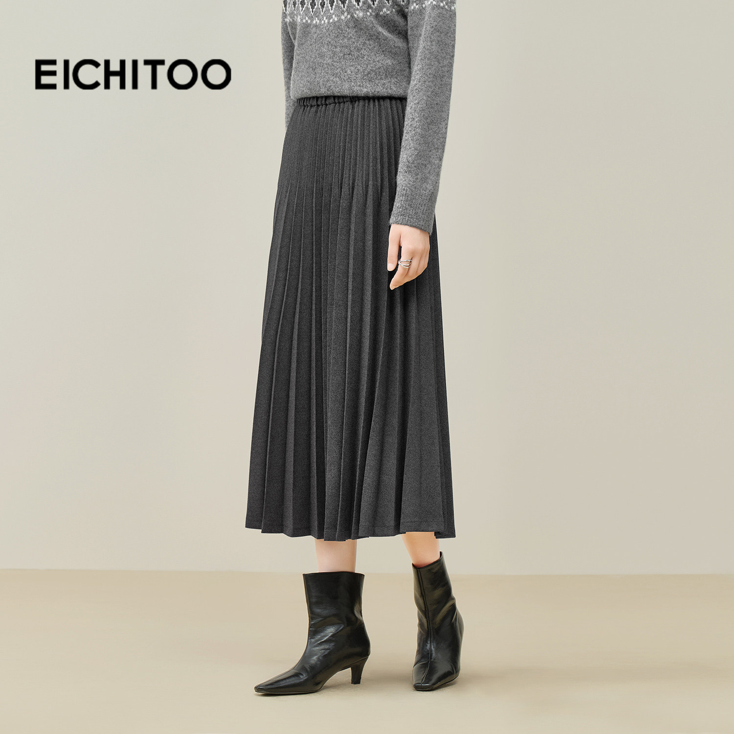 爱居兔压褶灰半身裙2025年冬季新款女百搭飘逸显瘦长单裙