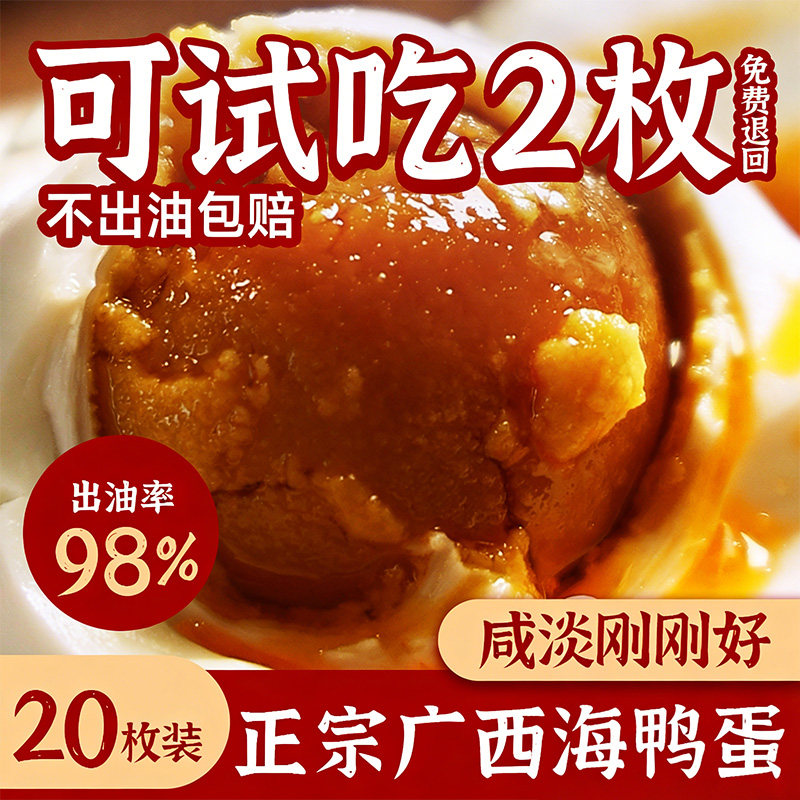 正宗红矮树林烤海鸭蛋特大80克20枚熟咸鸭蛋广西北海特产流油整箱