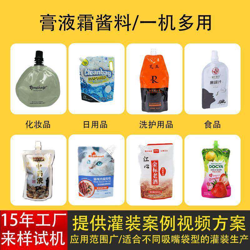 洗衣液染发剂汤汁自立吸嘴袋灌装旋盖机全自动沐浴露吸嘴袋灌装机
