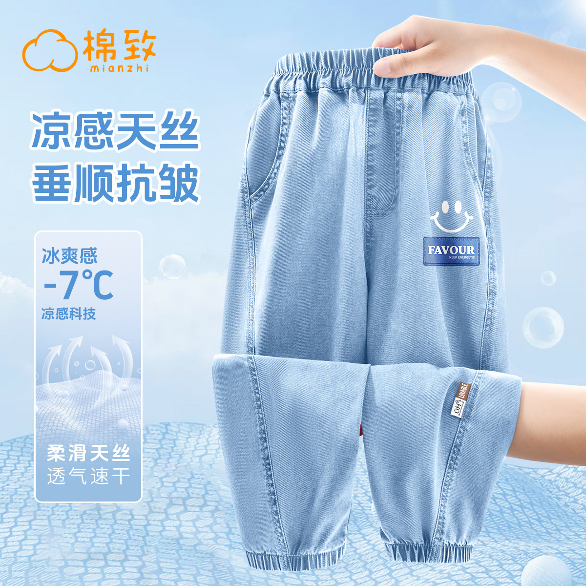 棉致男童裤子夏季薄款凉感速干男大童休闲长裤夏装儿童天丝牛仔裤