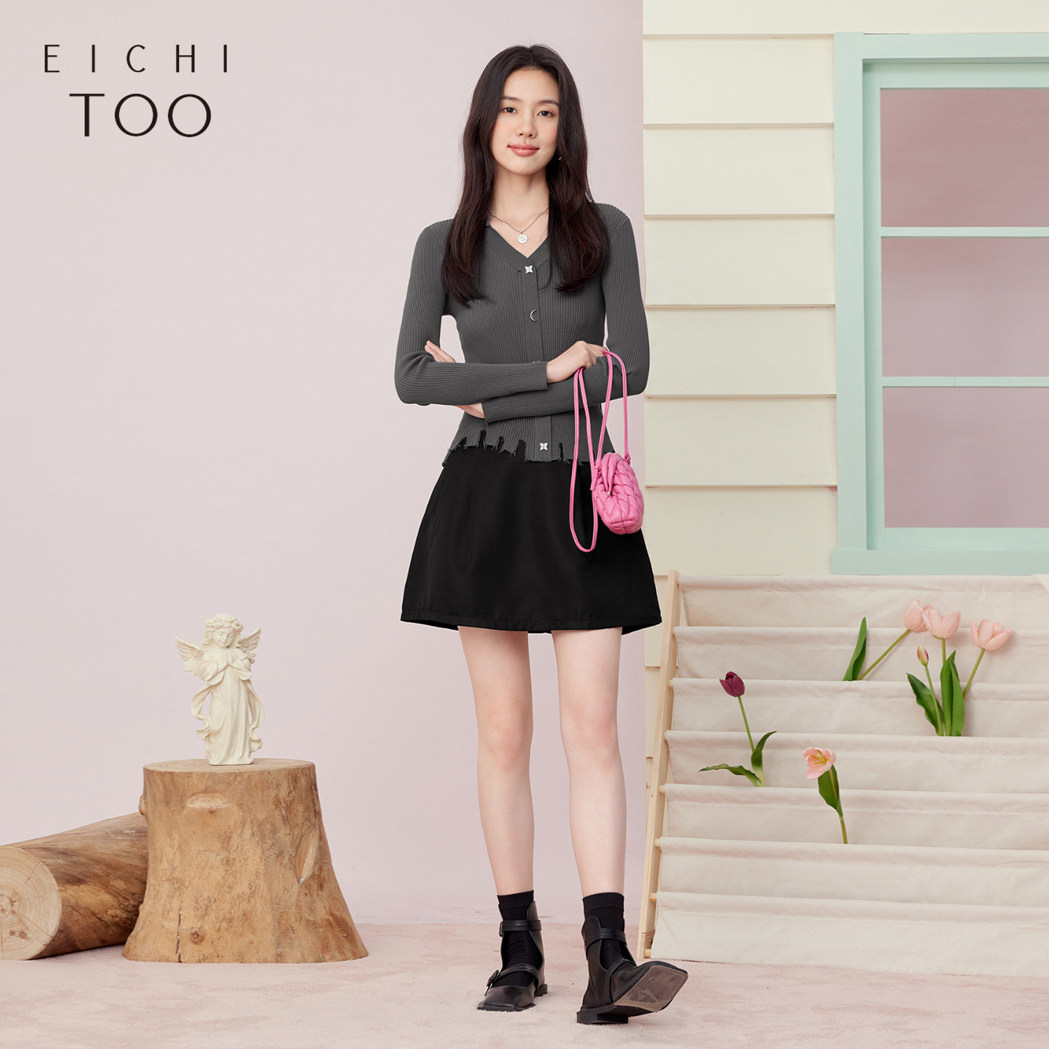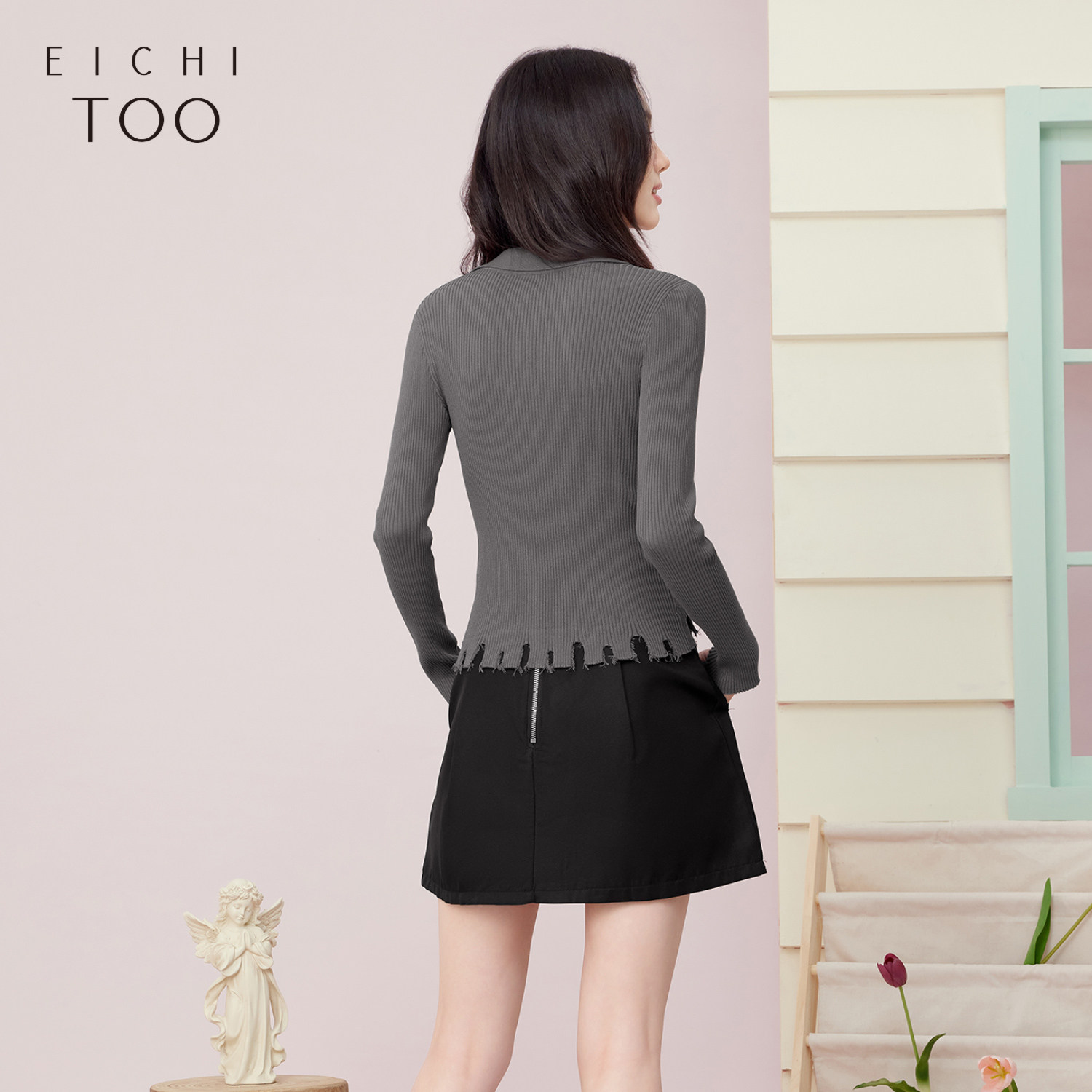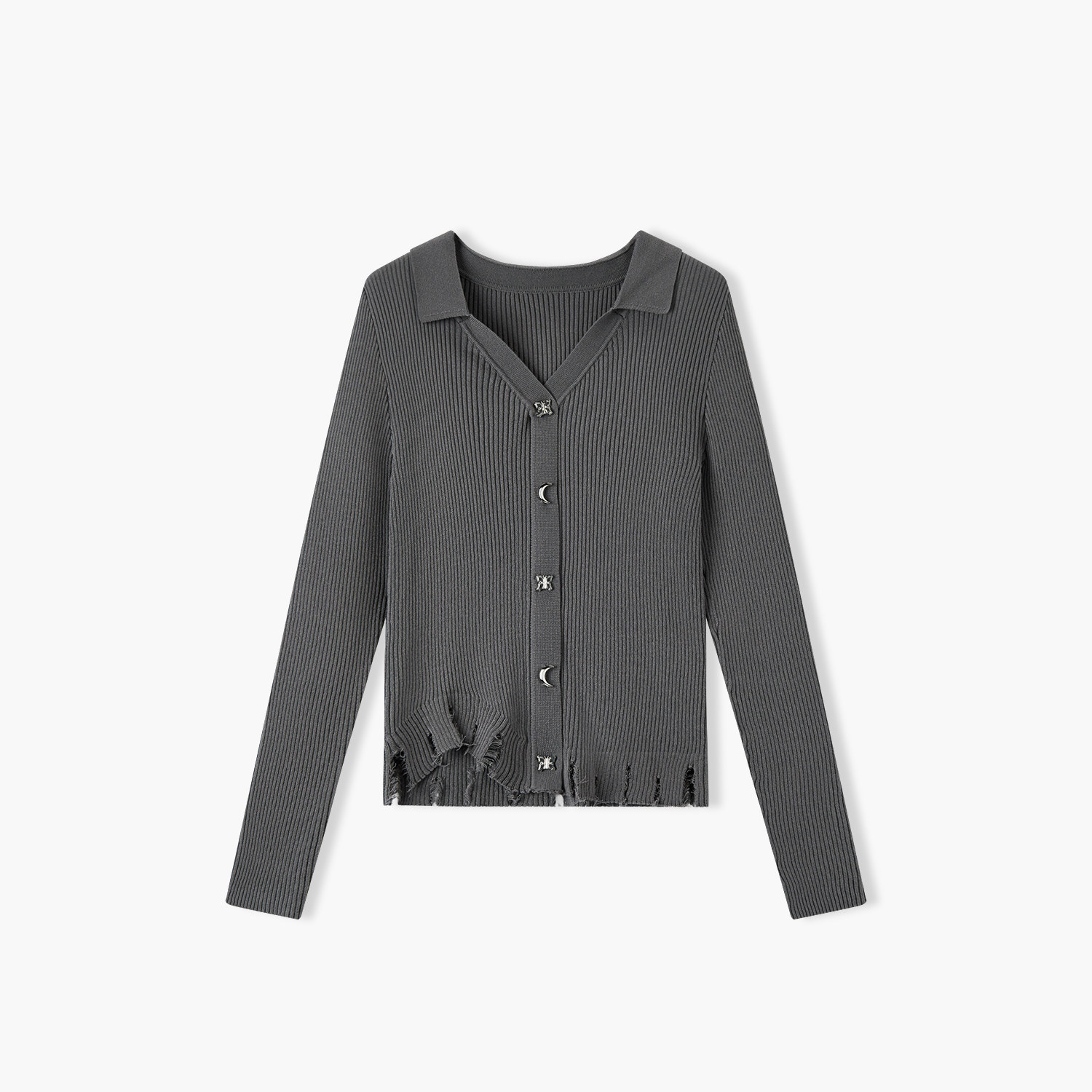 爱居兔春季新款修身时尚高级灰修身长袖针织衫
