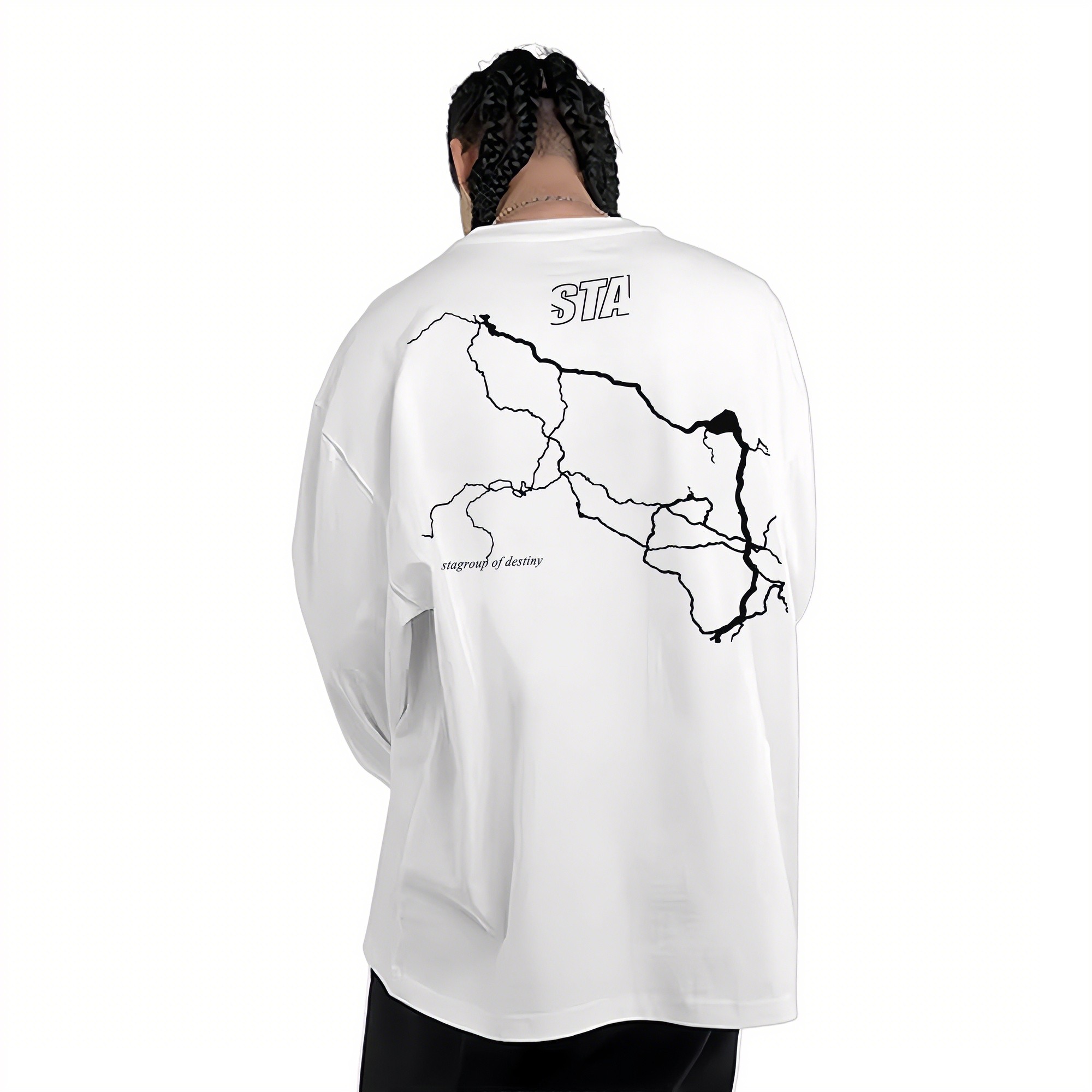 STA旗舰店美式复古闪电印花长袖T恤男女秋冬潮牌重磅纯棉宽松卫衣