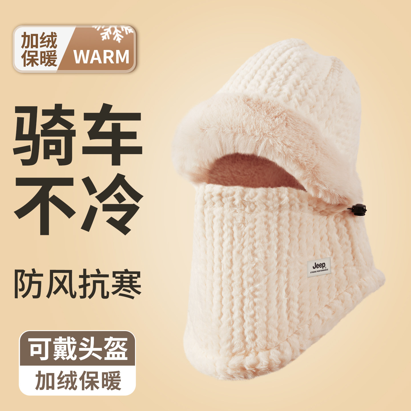 jeep吉普东北围巾帽子面罩一体女士冬季骑行保暖防风围脖电动车女