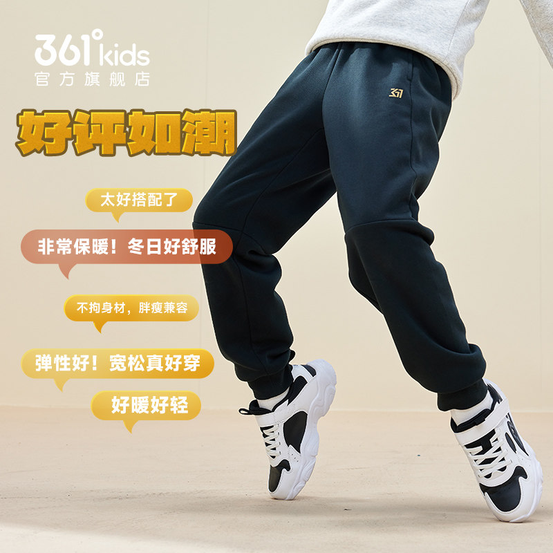 361°童装男女针织加厚加绒儿童长裤2025冬季新款中大童运动长裤