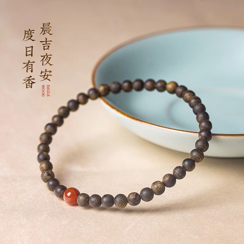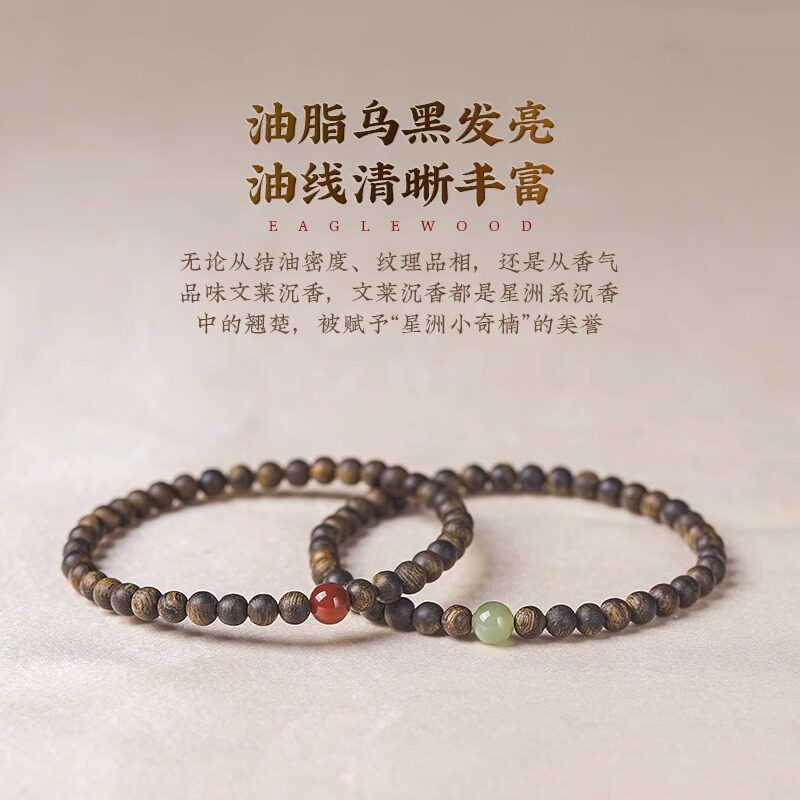 天然九九沉水越南芽庄白奇楠沉香手串男和田玉转运木质手链女礼物