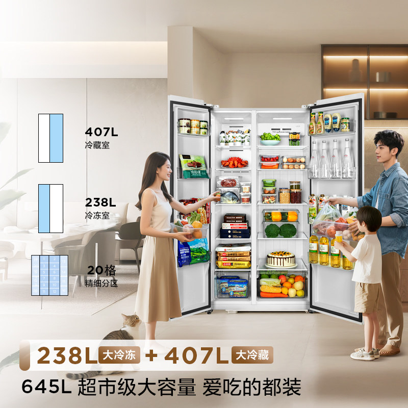 政府换新补贴海尔统帅618L双开对开门大容量无霜一级变频家用冰箱