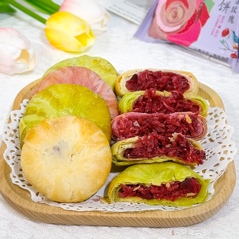 玫瑰鲜花饼云南特产中秋月饼礼盒早餐糕点小吃零食休闲食品