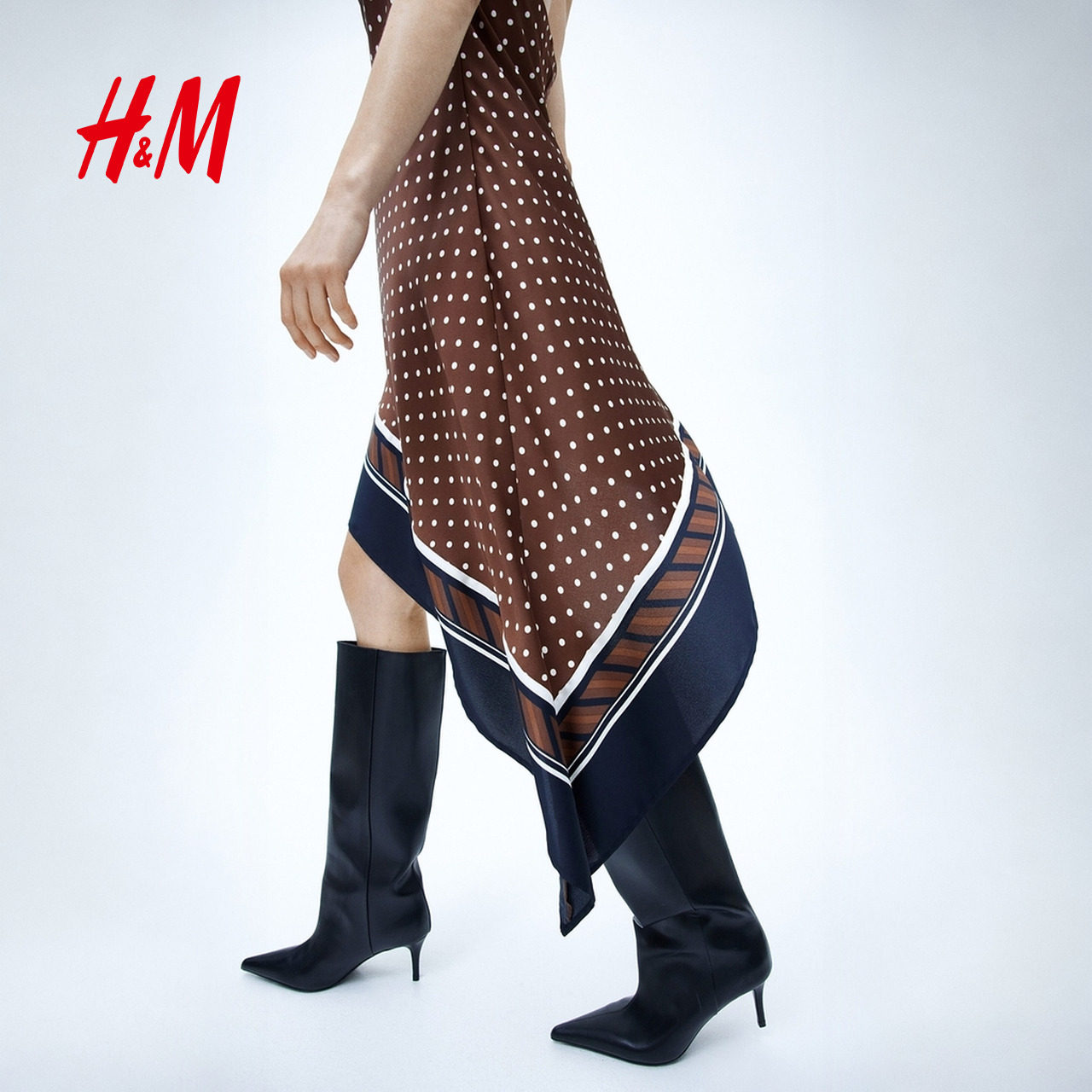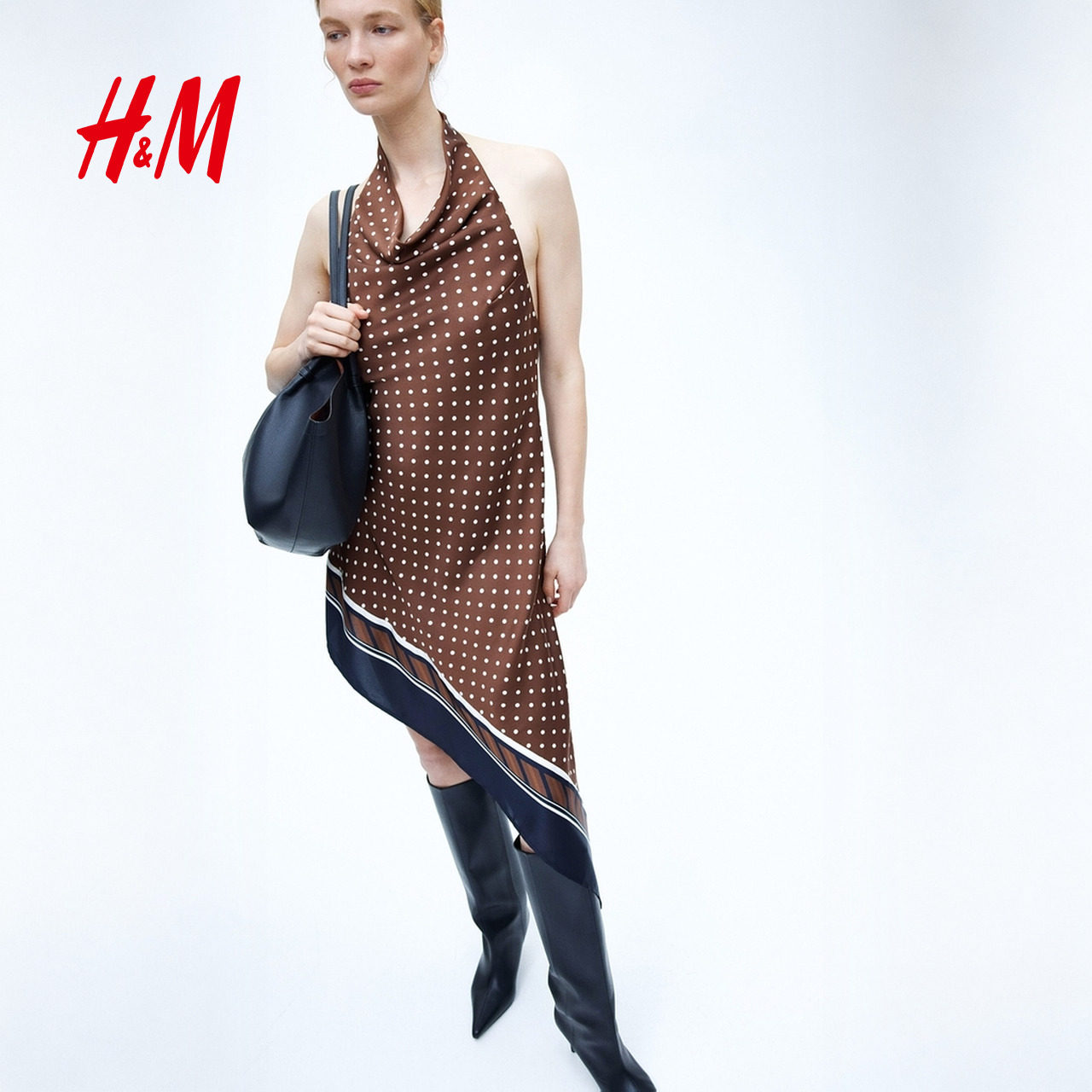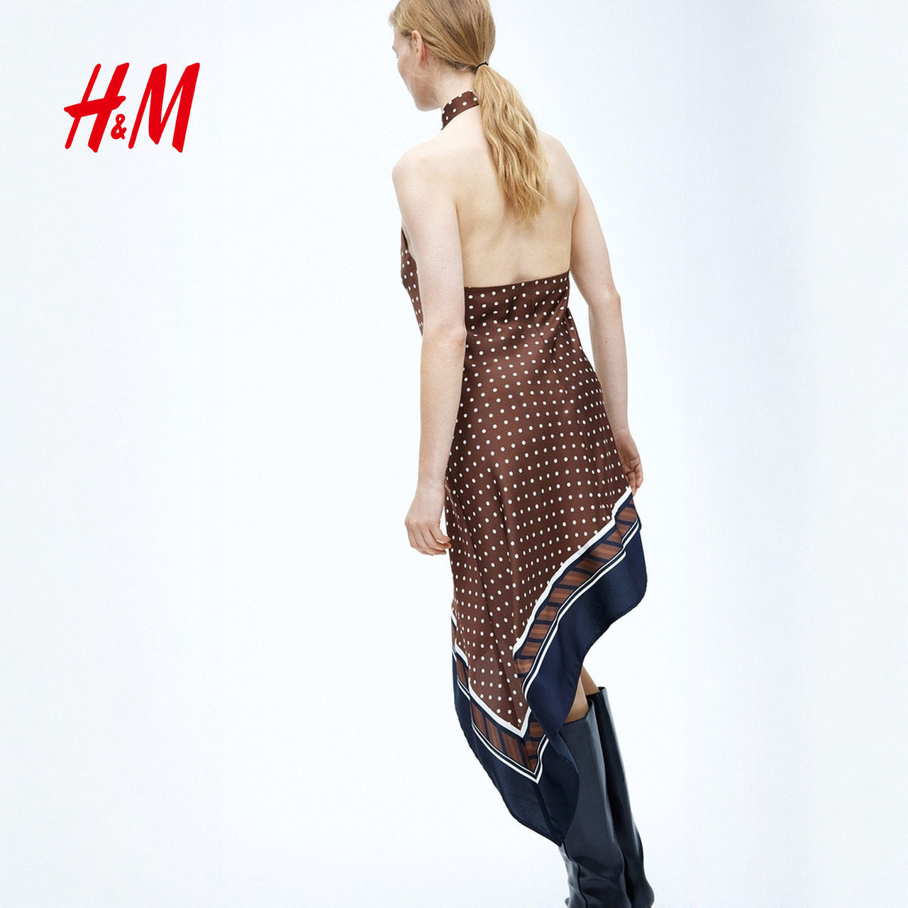 HM2026春季新款女装不对称缎质挂脖连衣裙1331831