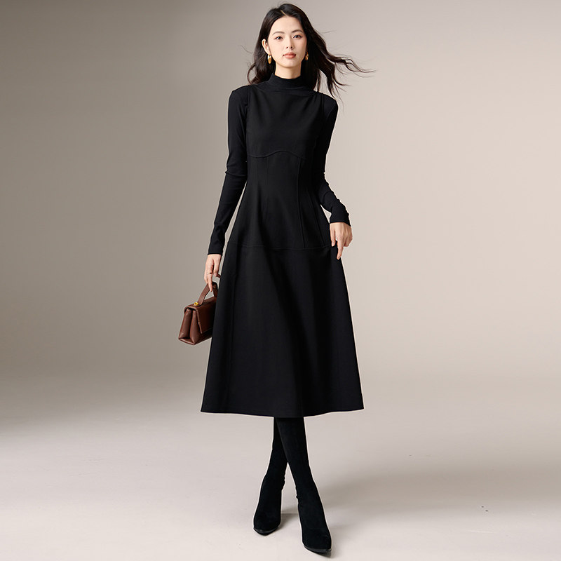 iqcq气球熊时尚辣妹套装秋季抹胸连衣裙女收腰一字肩黑色蓬蓬裙子