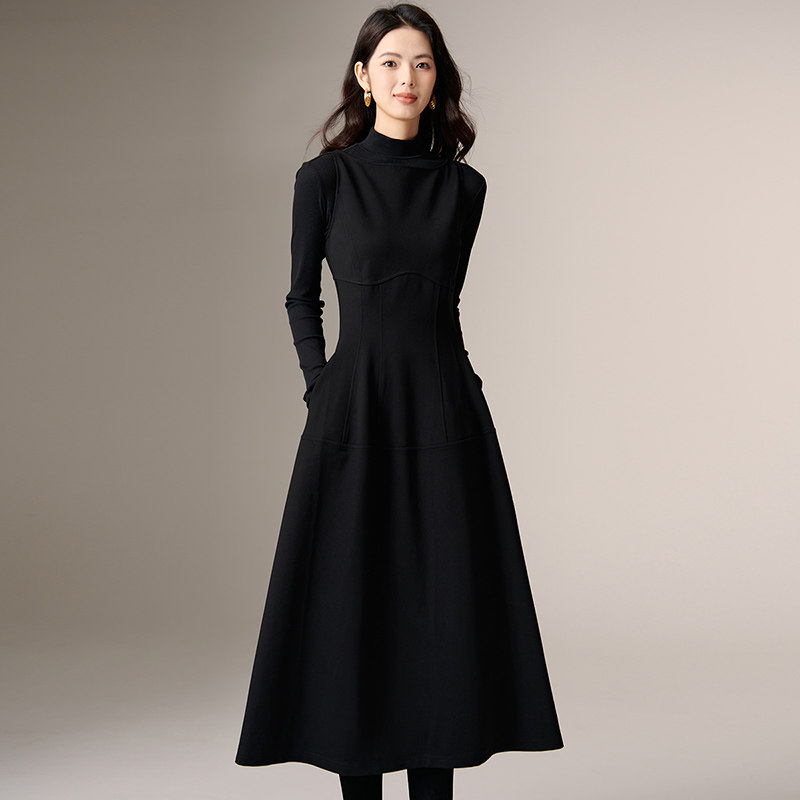 半练带胸垫连衣裙背心裙子黑色长裙吊带裙秋季流行新款打底小黑裙