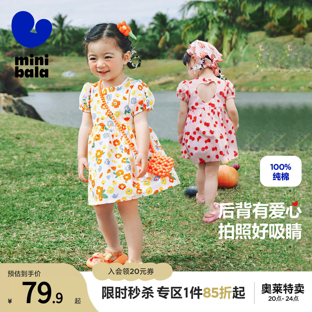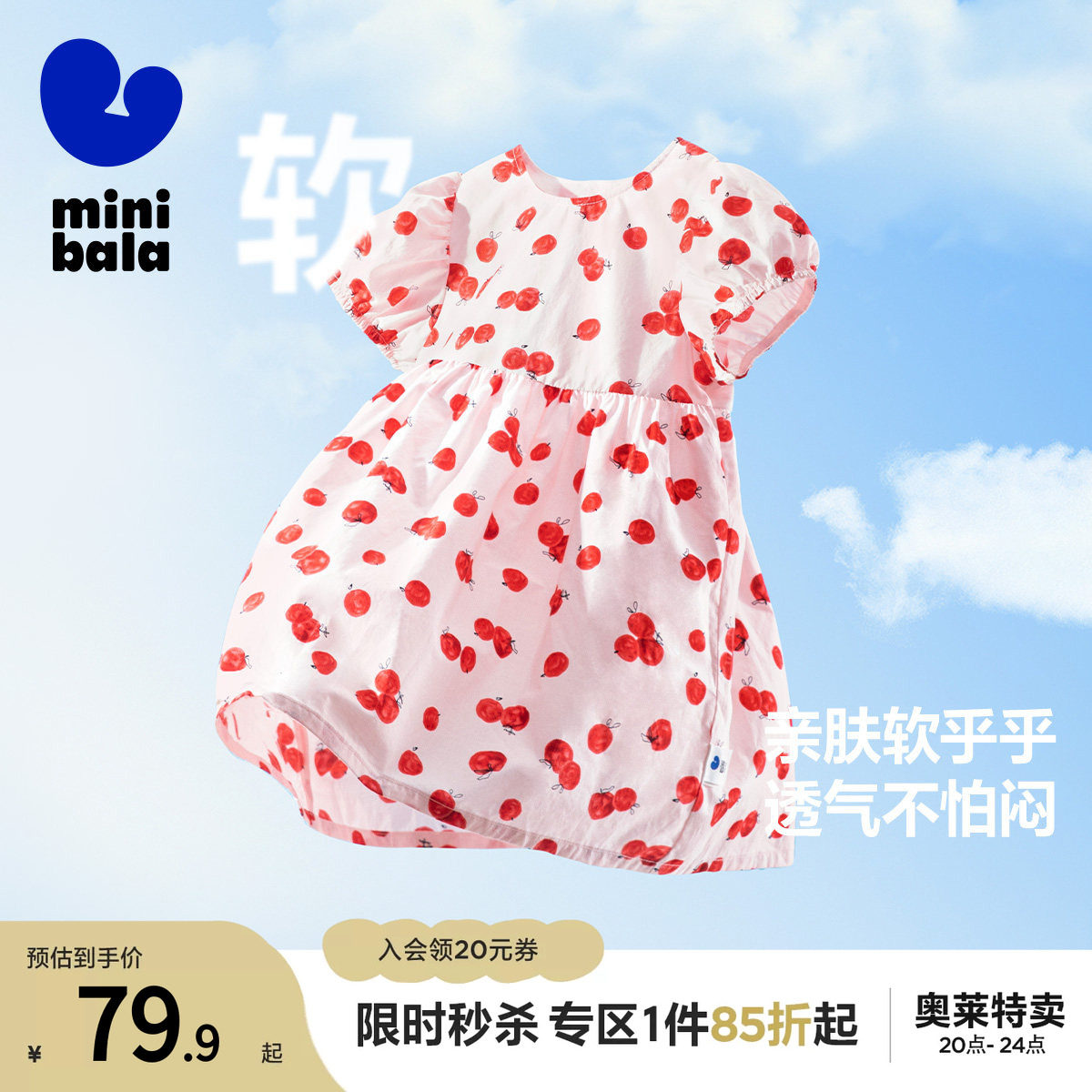 迷你巴拉巴拉夏季新款女童棉甜美公主裙宝宝洋气泡泡袖连衣裙
