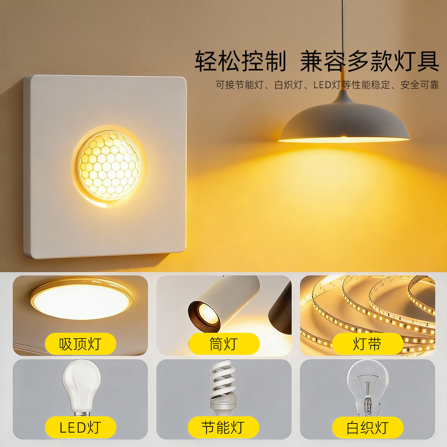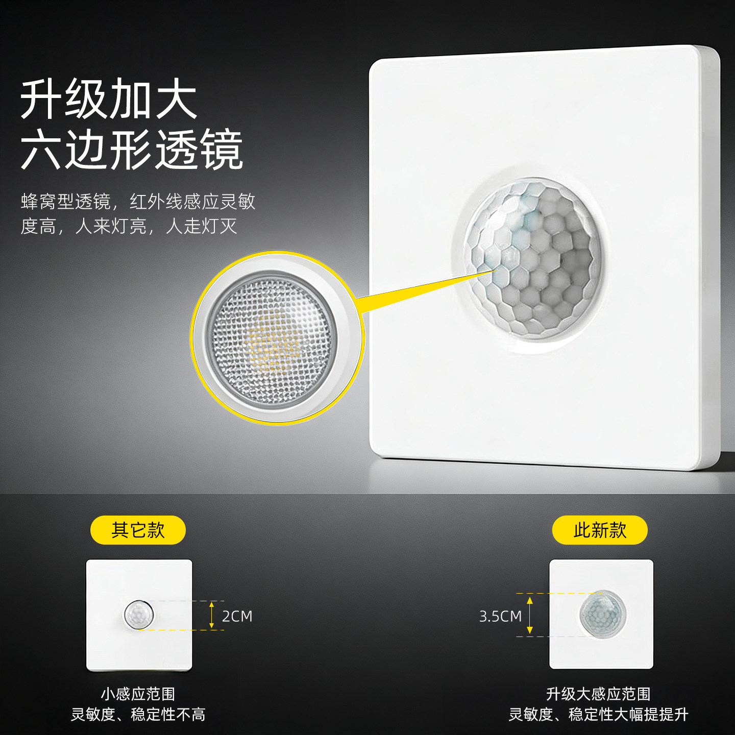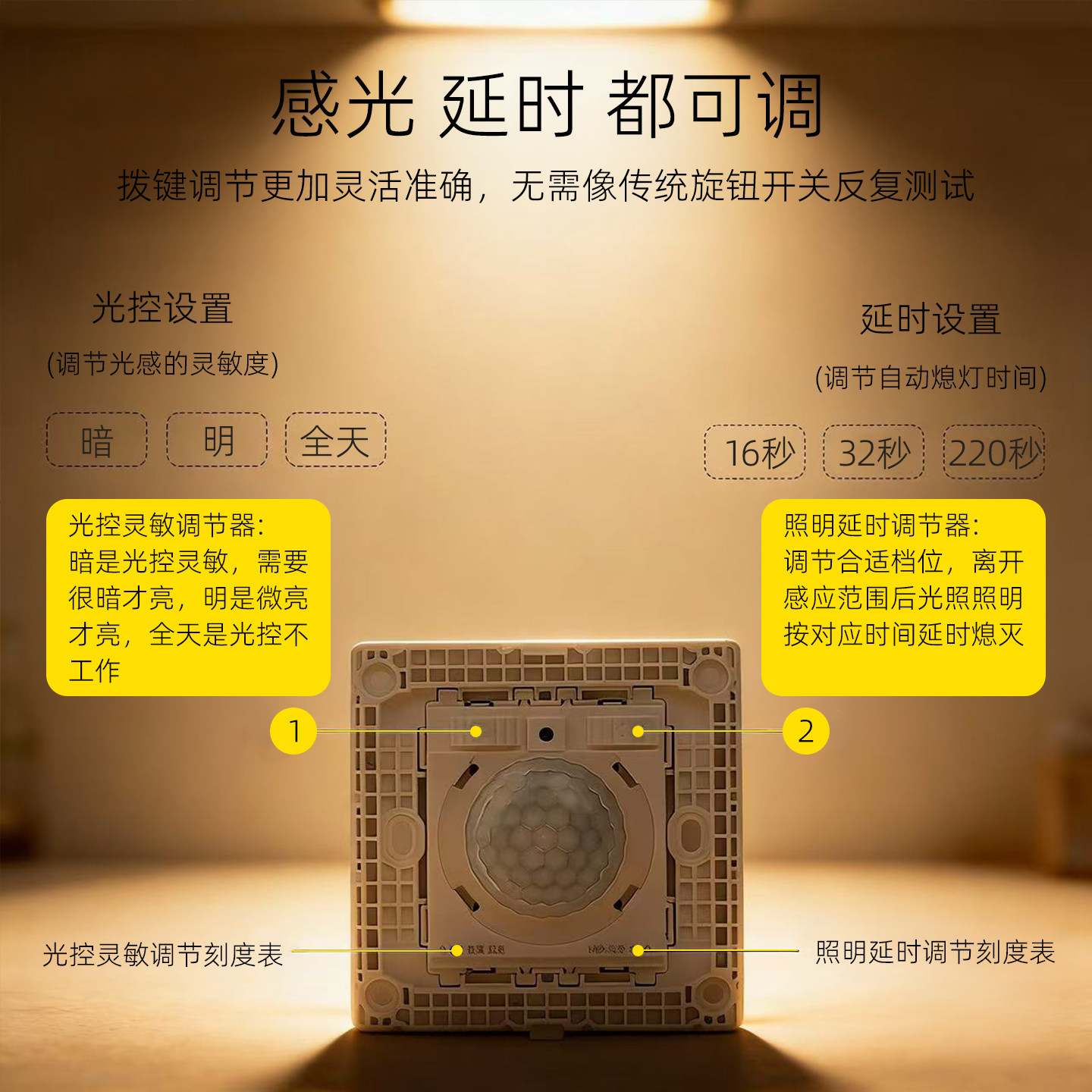 人体感应开关86型led吸顶灯红外线大功率可调节感应开关声控楼梯