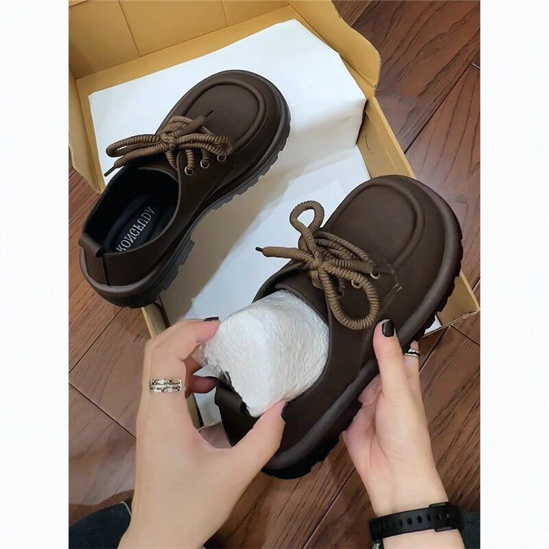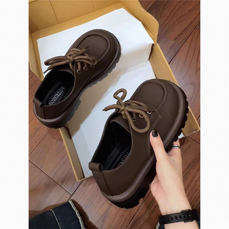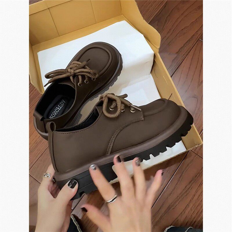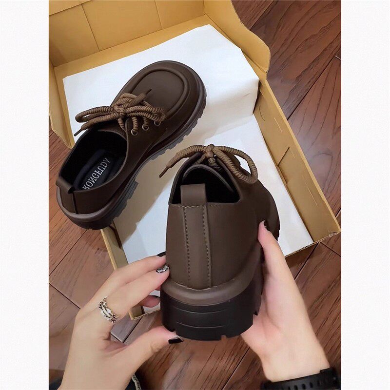 蔻孜真皮厚底乐福鞋女春秋季2025新款百搭单鞋系带英伦风小皮鞋