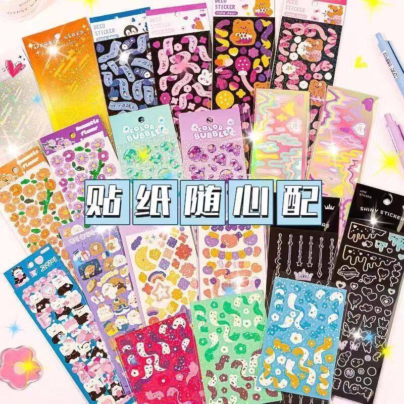 咕卡贴纸便宜女孩儿童手帐镭射贴画随心配大套装古卡手账粘贴手账