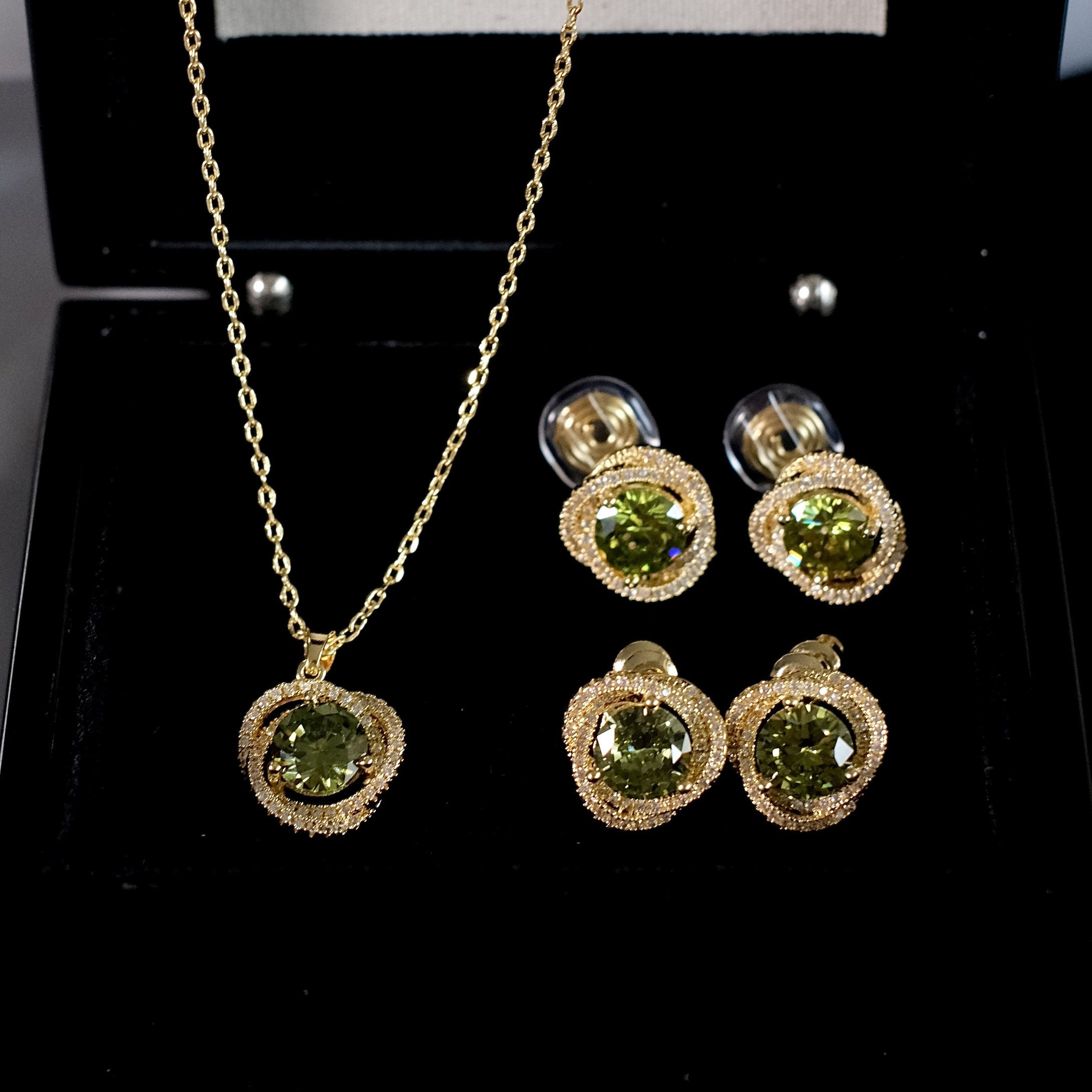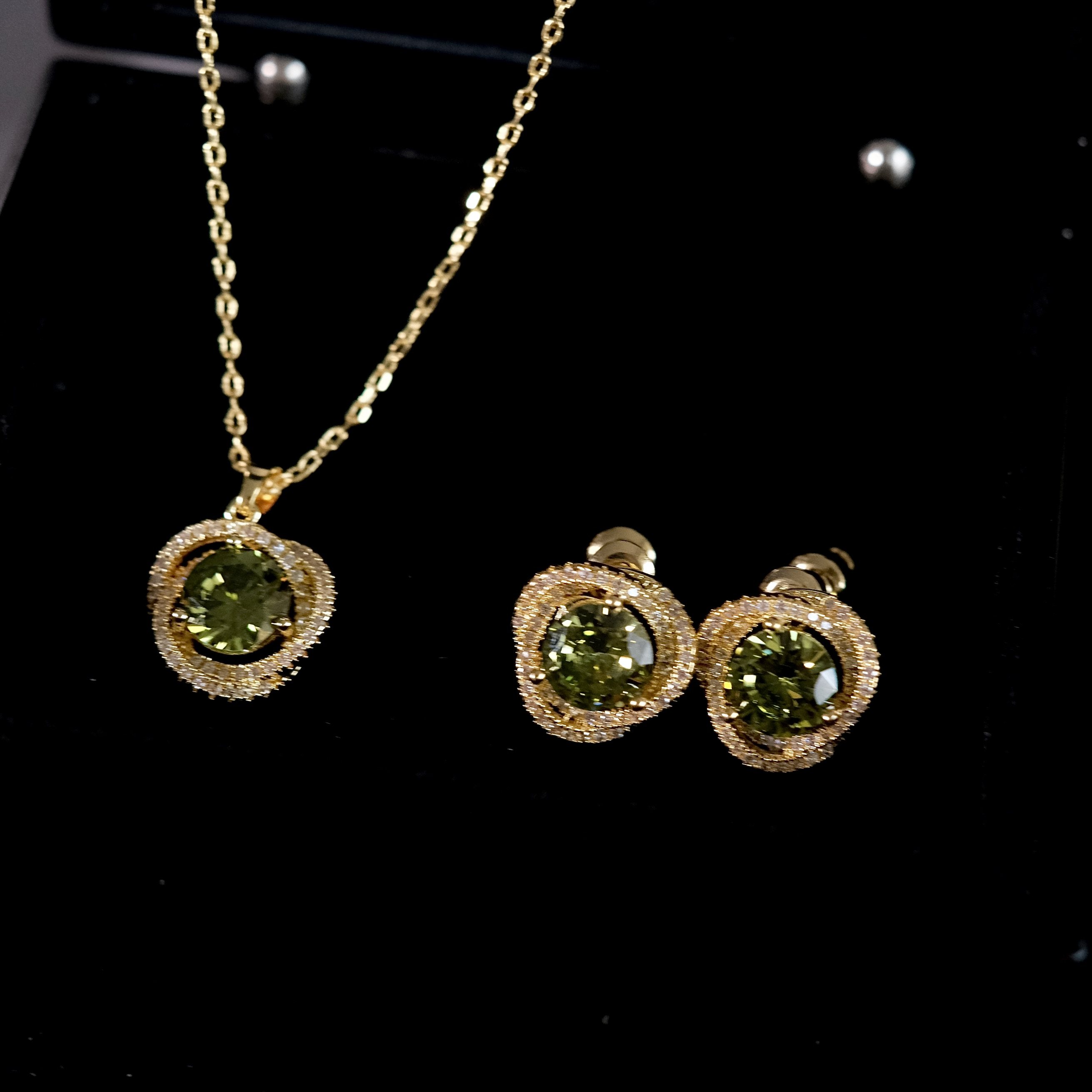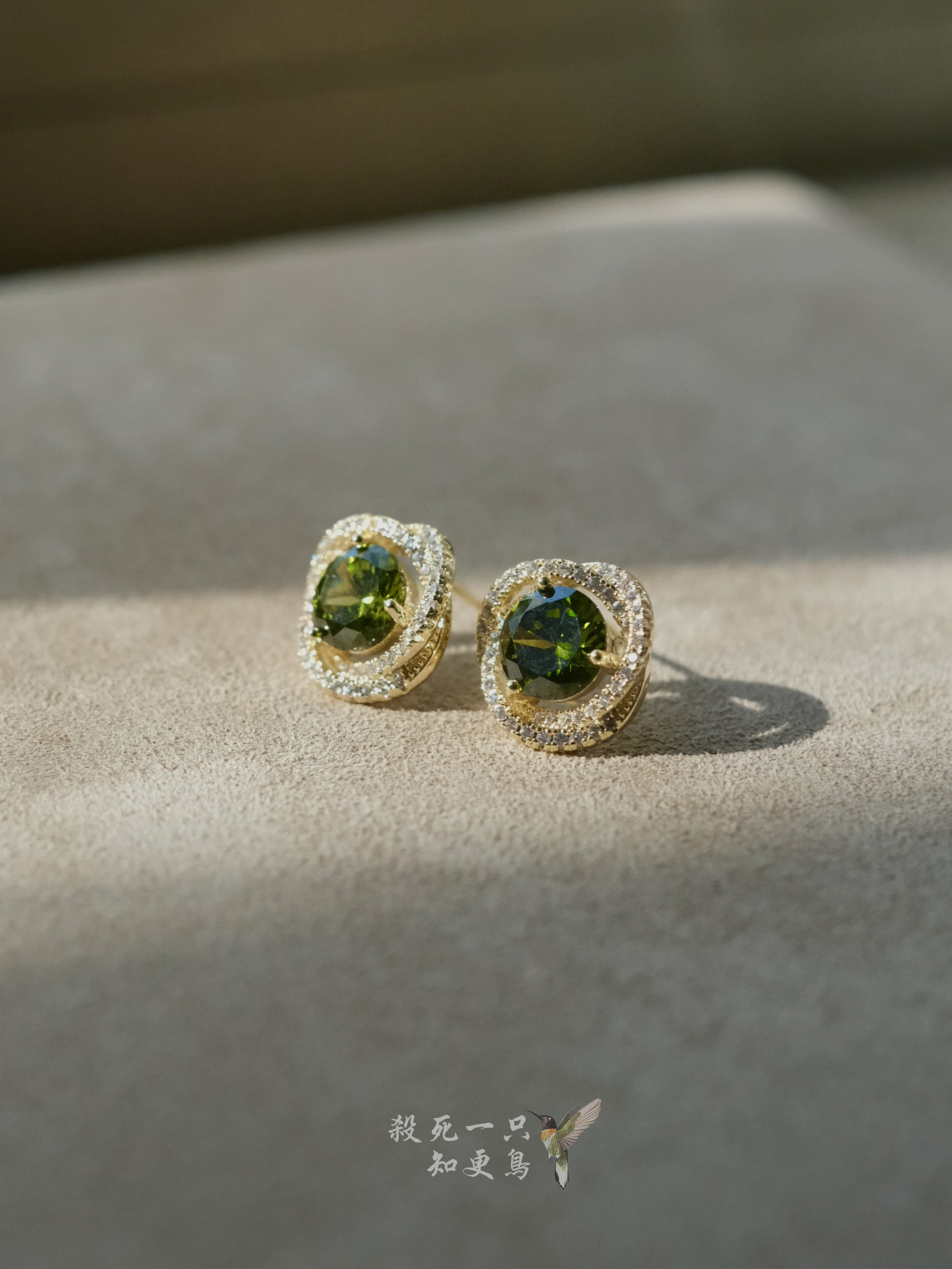 知更鸟|碧绿眼眸 法式复古港风优雅高级感橄榄绿锆石耳钉耳夹女