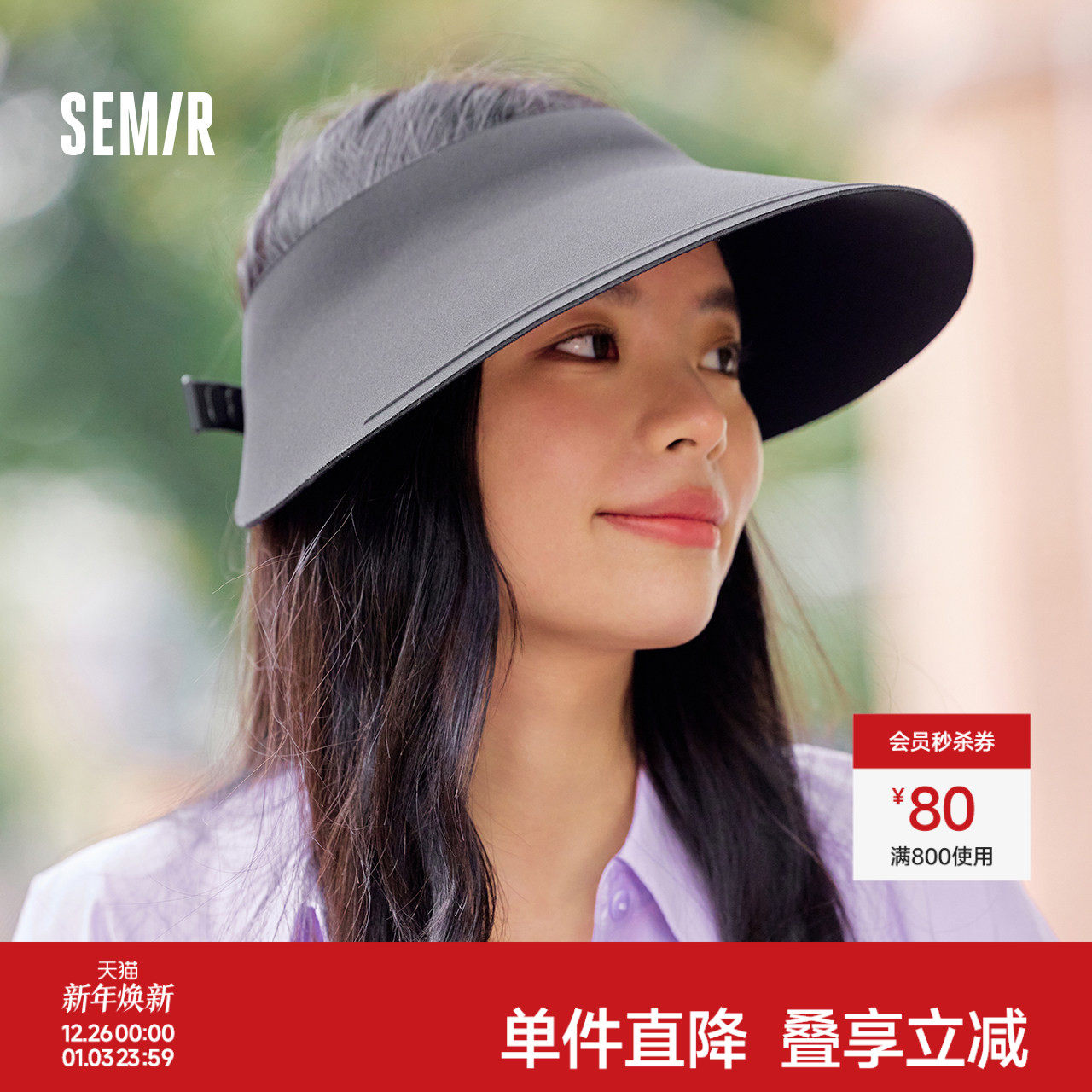 森马防晒帽女黑色可调节收纳无痕一体空顶帽夏大帽檐遮阳帽显脸小