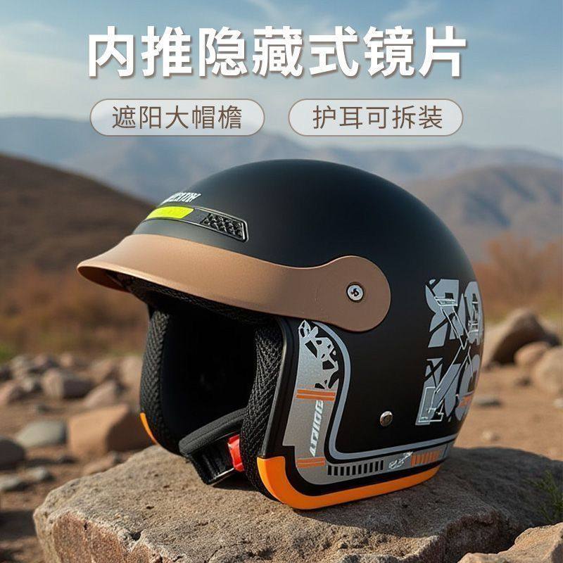新国标3C认证电动摩托车头盔男女士冬季复古半盔四季透气轻便头盔