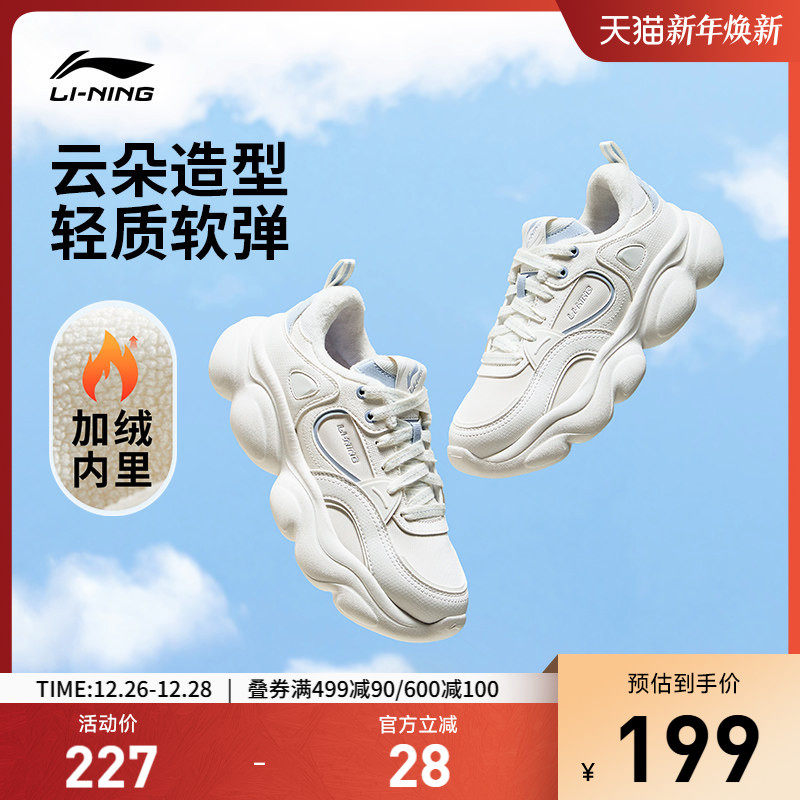 李宁云朵丨休闲鞋女鞋2025秋季新款复古厚底老爹鞋轻便增高运动鞋