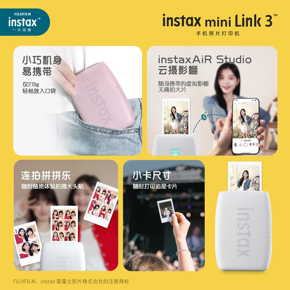 【24期免息】富士立拍立得mini link3迷你便携式手机照片口袋打印机热升华打印照片机可洗照片link2升级款