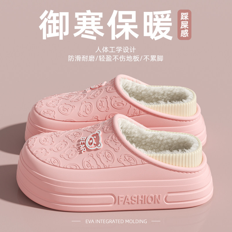 男女士秋冬季居家外穿厚底保暖加绒加厚防水防臭棉鞋多规格