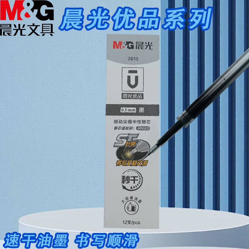晨光优品2613按动黑替芯ST高品质05黑心秒干刷题中性替芯耐用顺滑