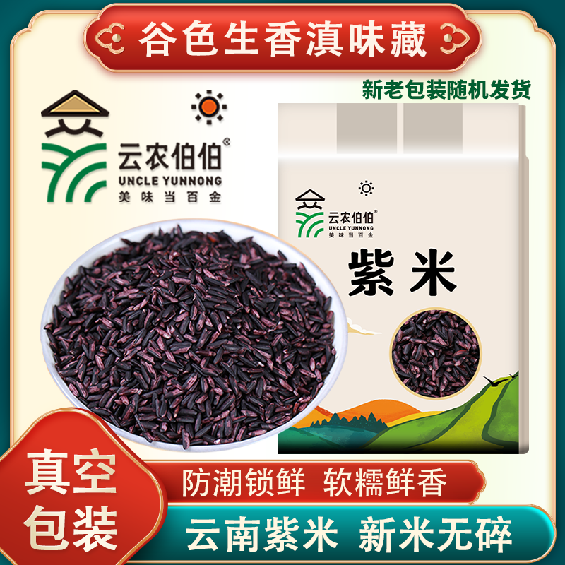 云农伯伯云南墨江紫米250g500g紫糯米批发黑米血糯米饭团