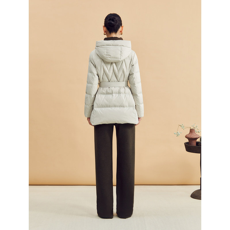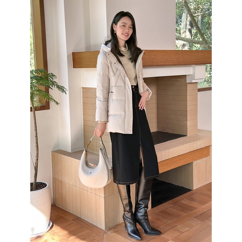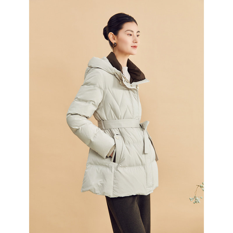 YINER音儿专选女装冬季一手长高蓬松系带收腰撞色连帽保暖羽绒服