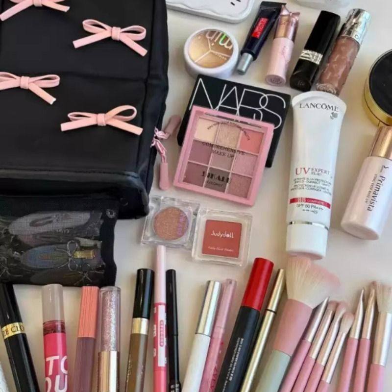 网纱化妆包洗漱收纳包便携式收纳袋整理包零钱笔袋证件袋口红网格