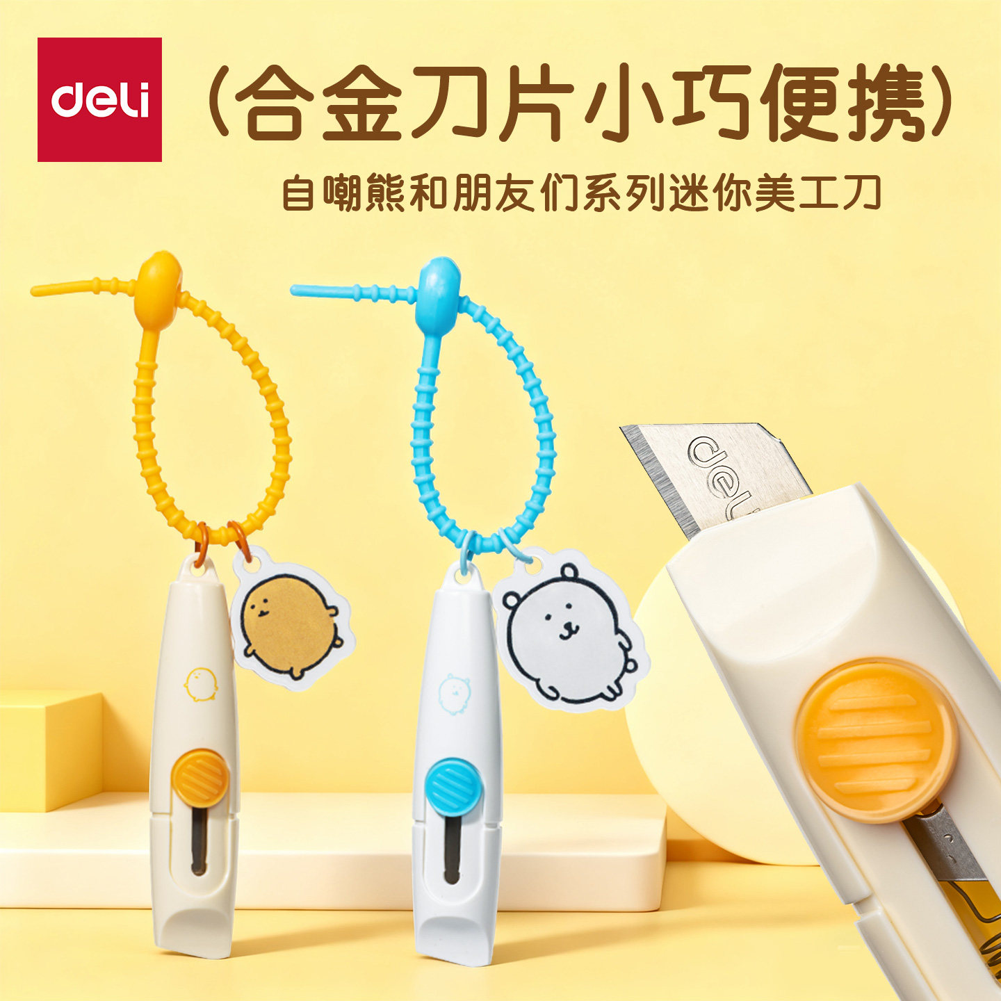 得力限定自嘲熊创意卡通美工刀可爱钥匙扣挂件便携迷你开箱器高颜值ins风拆快递便携式锋利简约小号裁纸刀