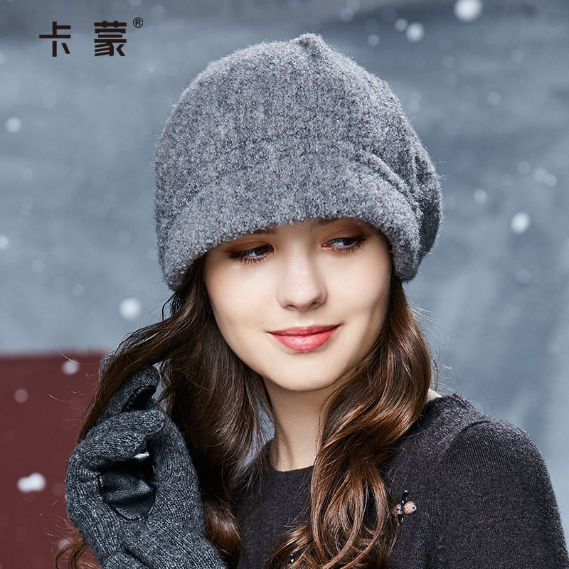 卡蒙秋季贝雷帽女羊毛蓓蕾帽简约纯色冬季针织帽毛线鸭舌帽子百搭