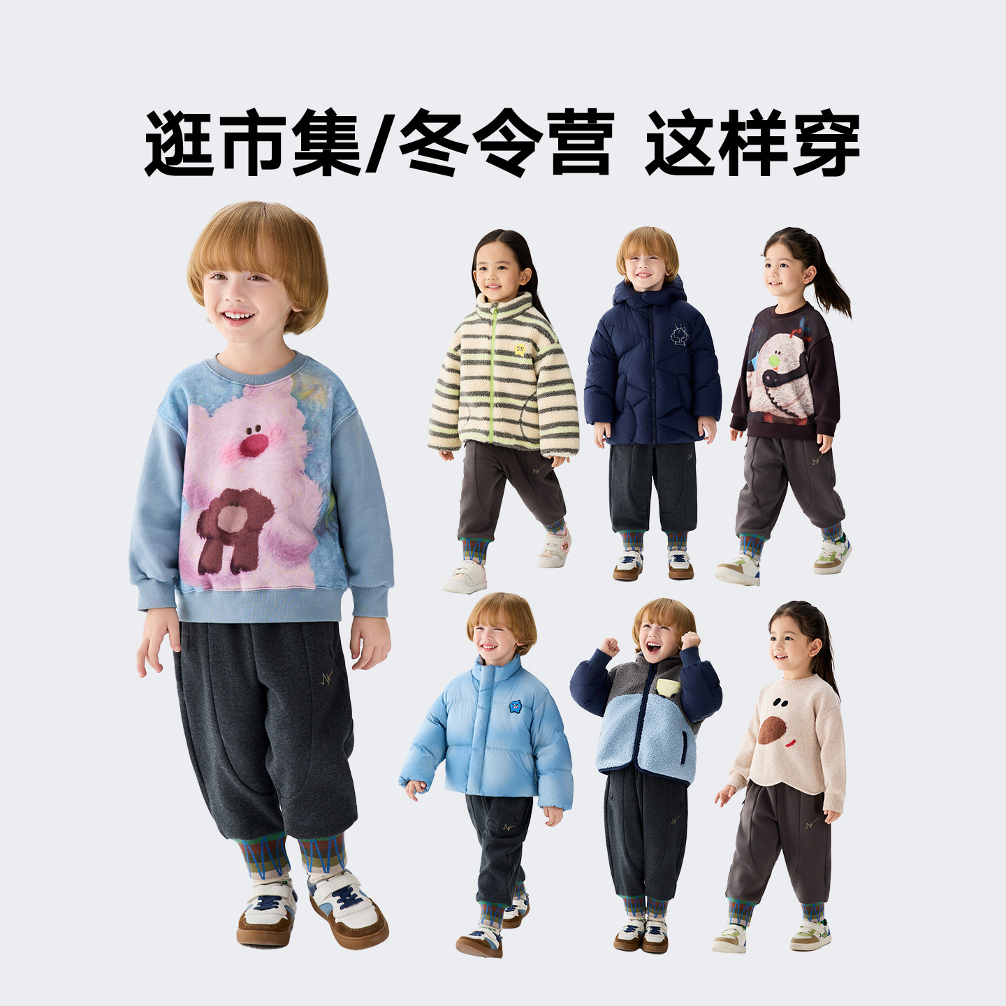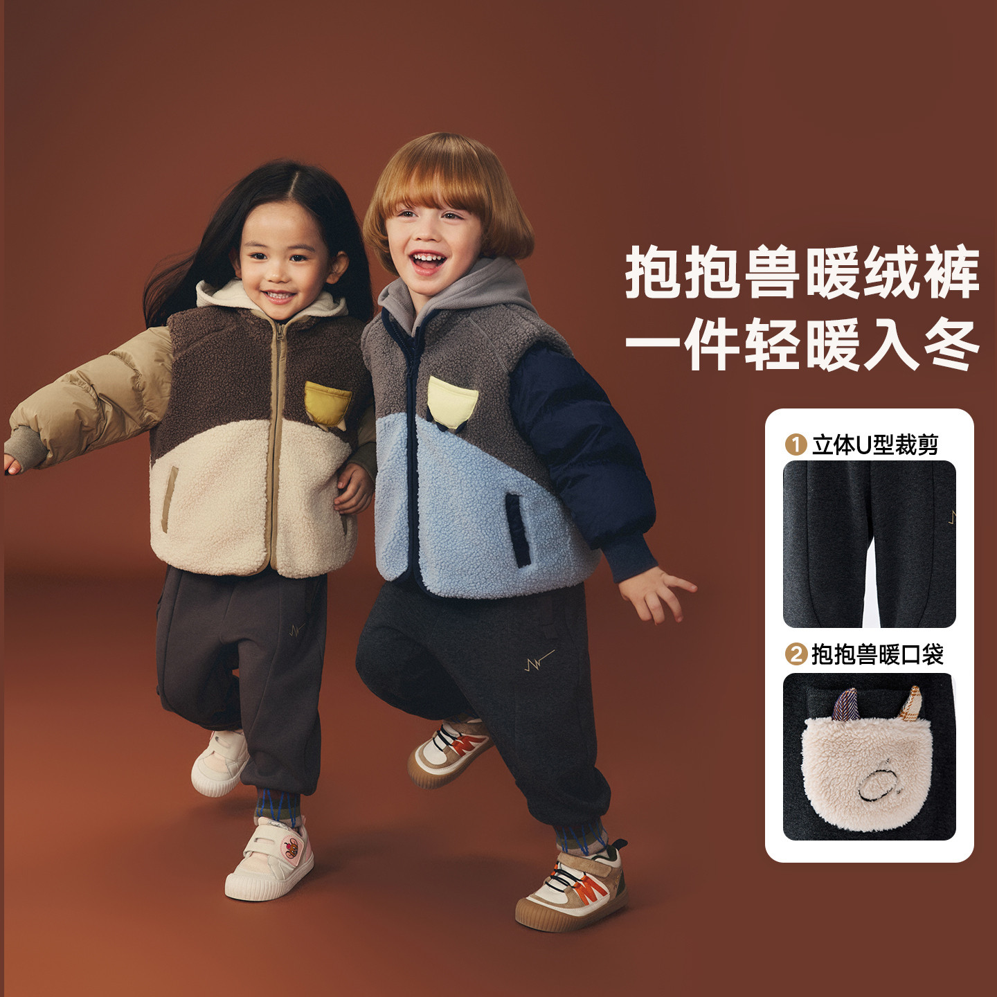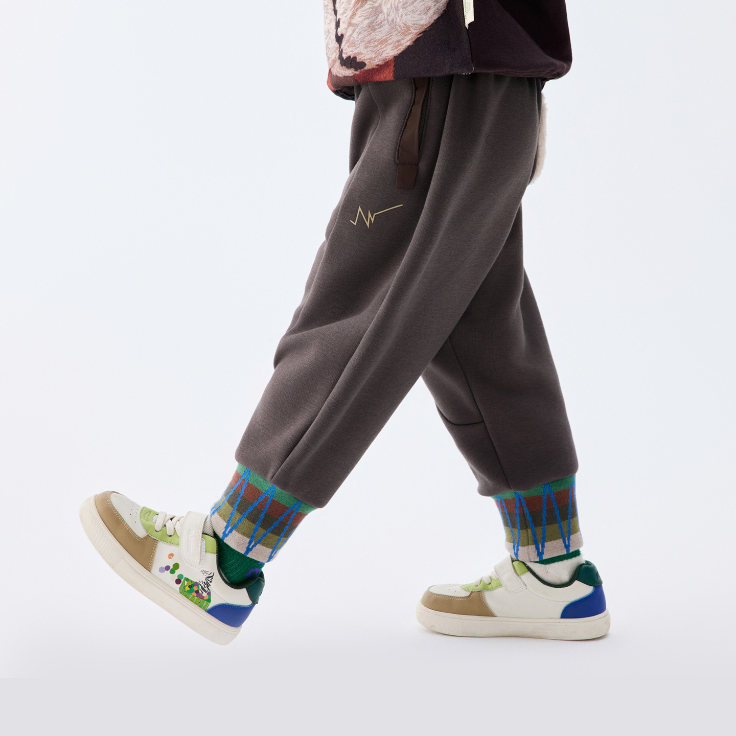 马拉丁儿童裤子25冬装新款男童女小童抱抱兽萝卜裤加绒针织长裤