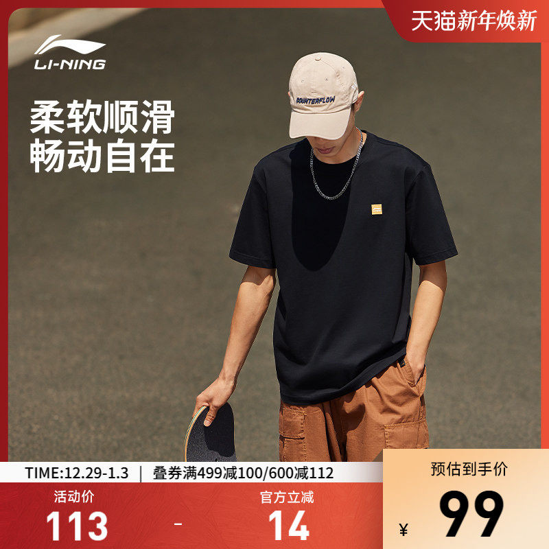 李宁短袖男士官方夏季半袖简约盐系情侣装黑色体恤纯棉运动T恤女
