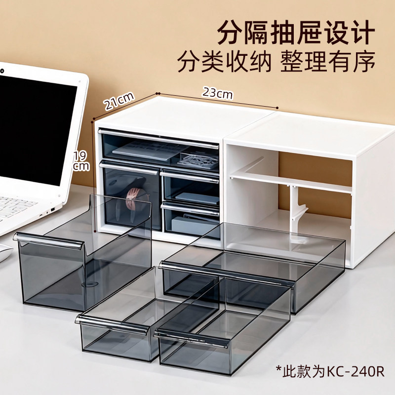 爱丽思桌面收纳盒多层办公桌文具抽屉式杂物箱书桌整理乐高置物架