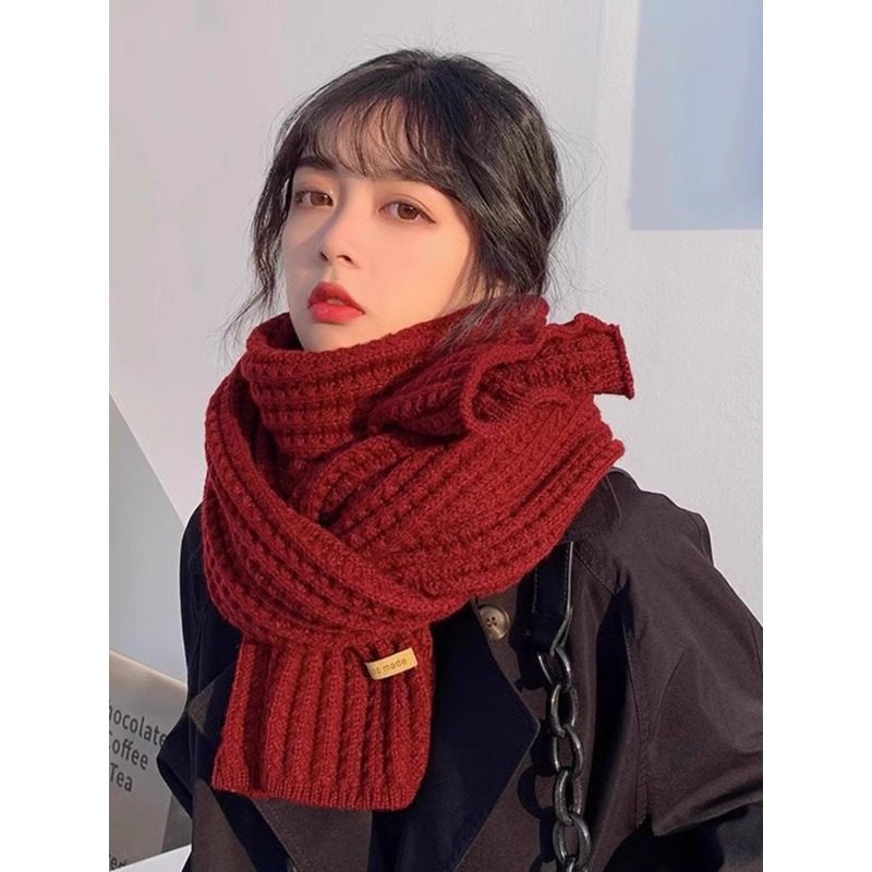 红色围巾女2025新款冬季毛线百搭高级感生日礼物情侣针织围脖白色