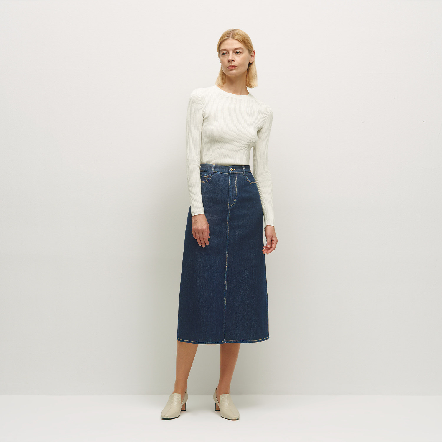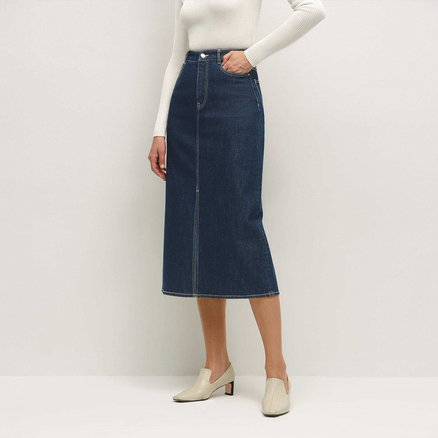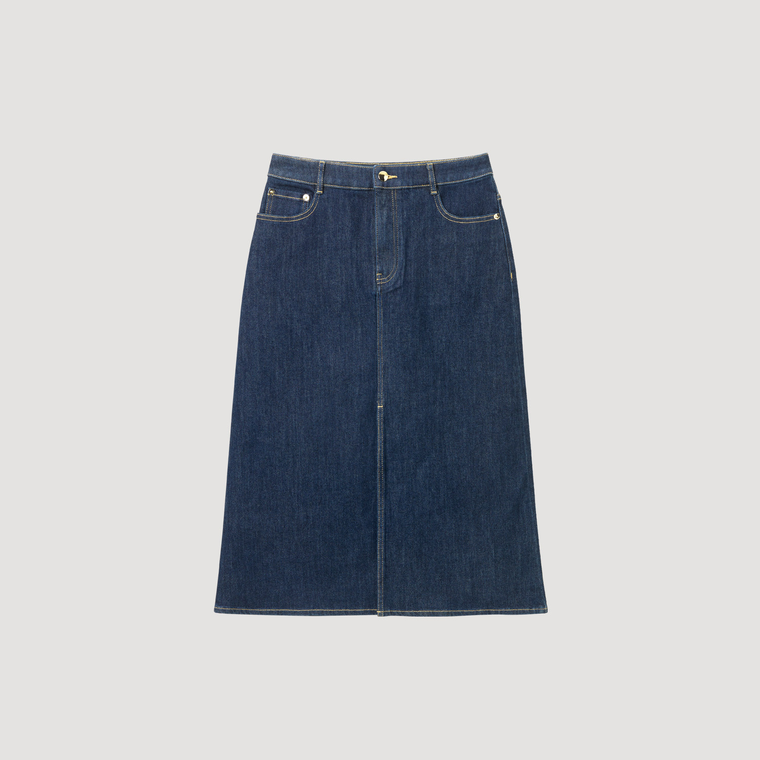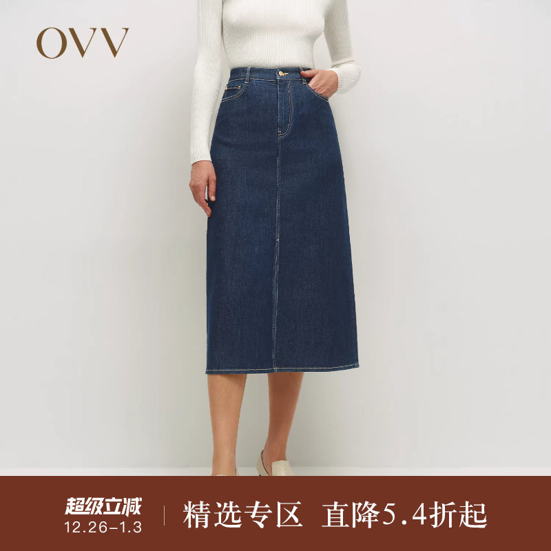 OVVOutlet秋冬热卖女装土耳其进口面料前中开衩牛仔半身裙