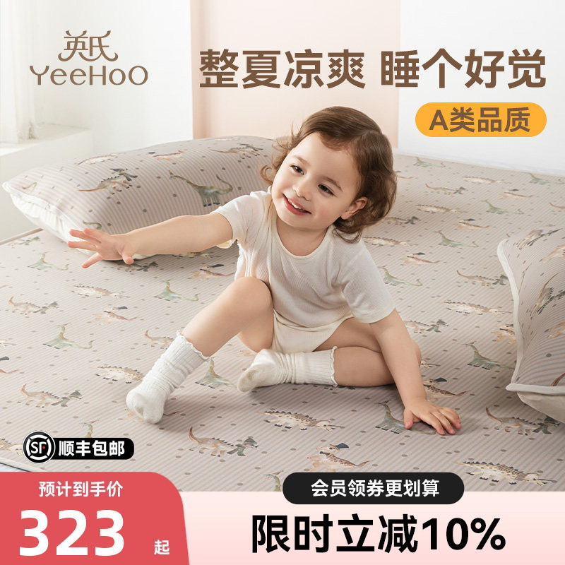 英氏儿童夏季凉席凉感可机洗空调席床笠款软席子可折叠恐龙探险记