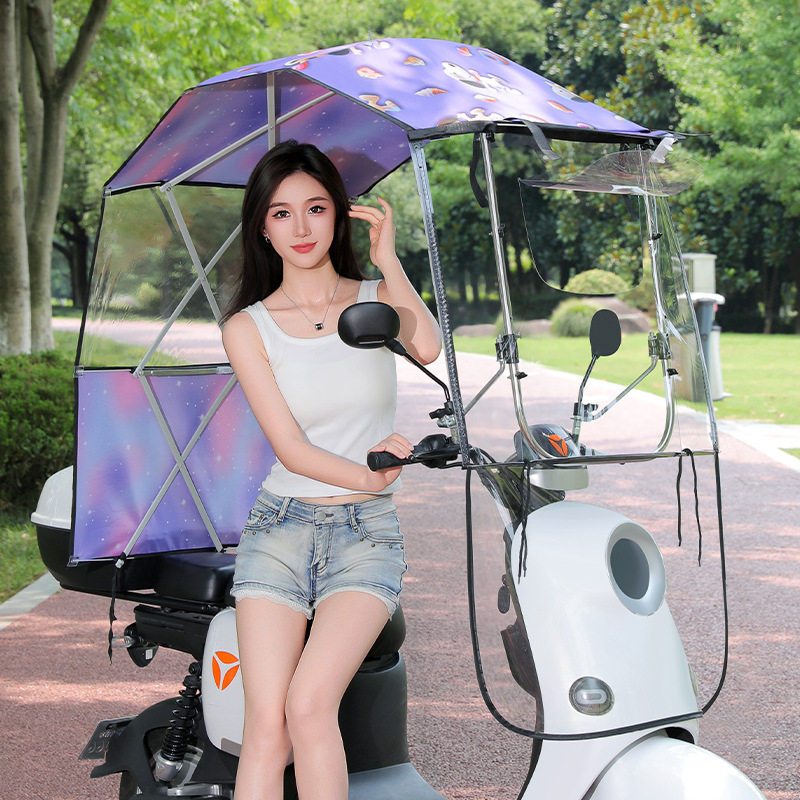 快拆电动车雨篷棚电瓶摩托车防风挡雨防晒伸缩遮阳伞折叠新款雨棚