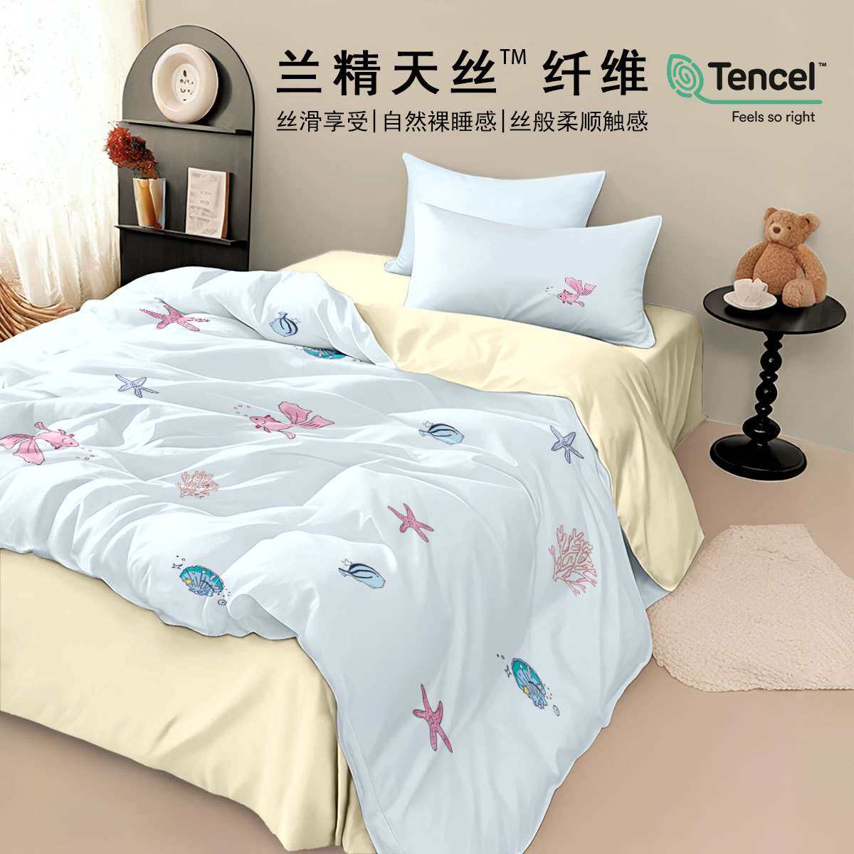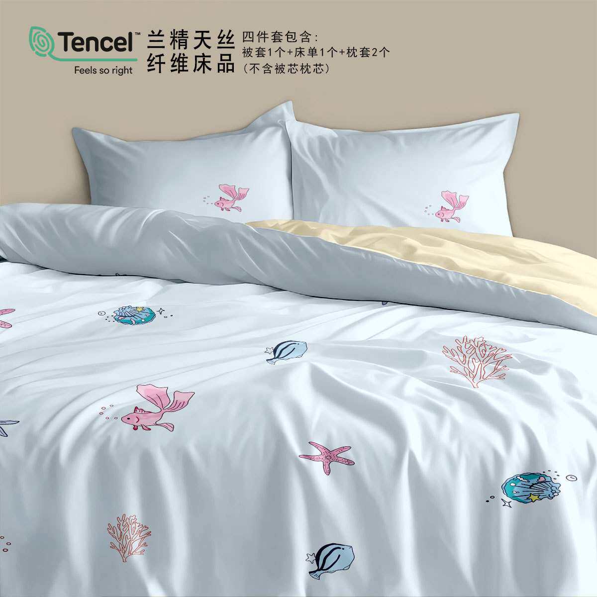 水彩海底世界兰精天丝2025新款四件套高级凉感丝滑套件床上用品