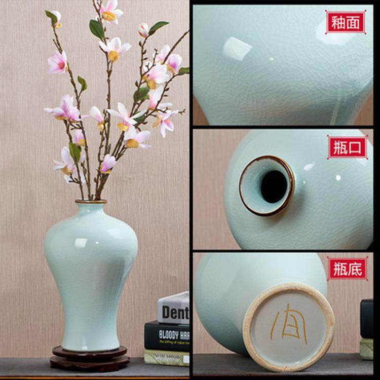 陶瓷花插器仿古官窑开片落地大花瓶现代家饰品客厅摆件