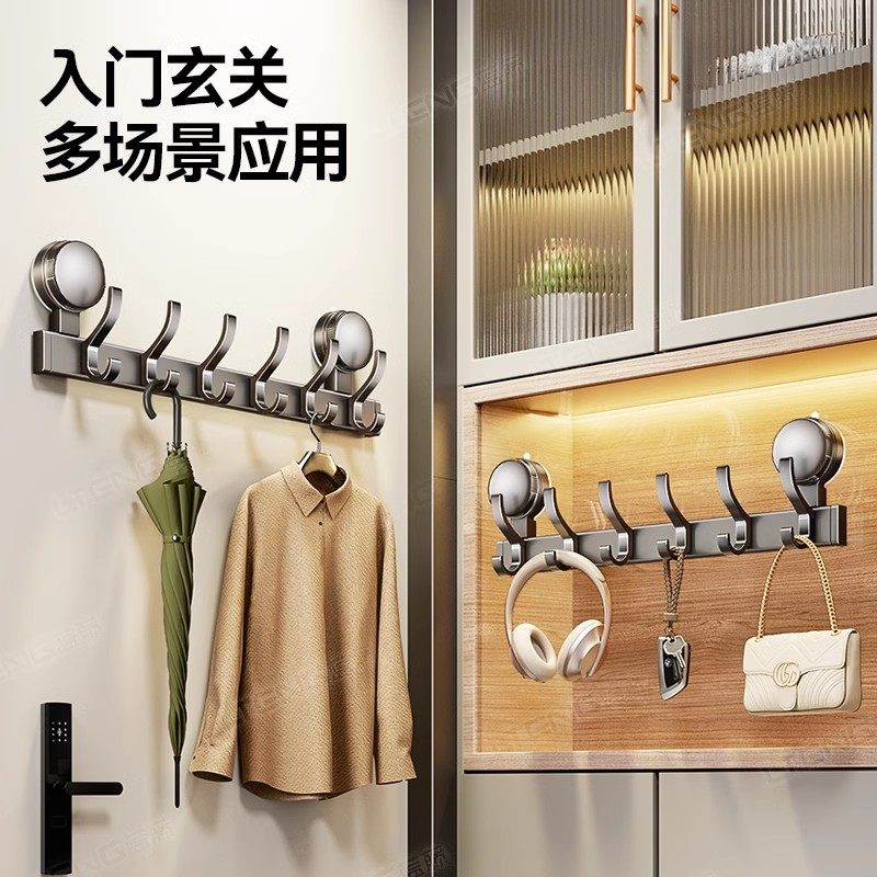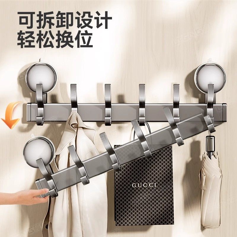 吸盘免打孔挂钩强力承重卫生间壁挂门后挂衣架浴室一排衣服毛巾灰