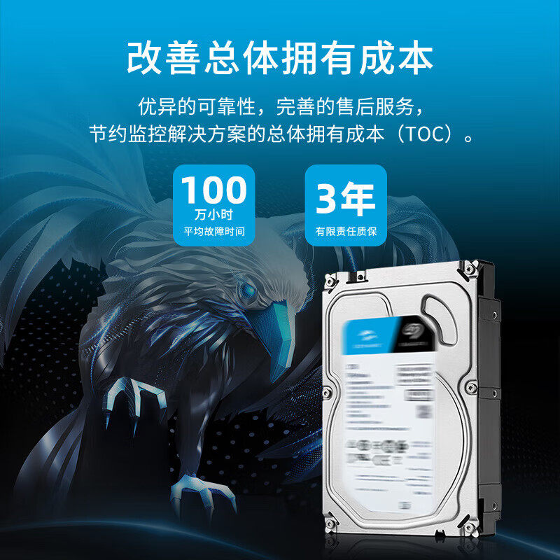 希捷ST8000VX009酷鹰8tb t监控安防录像垂直机械硬盘cmr静音