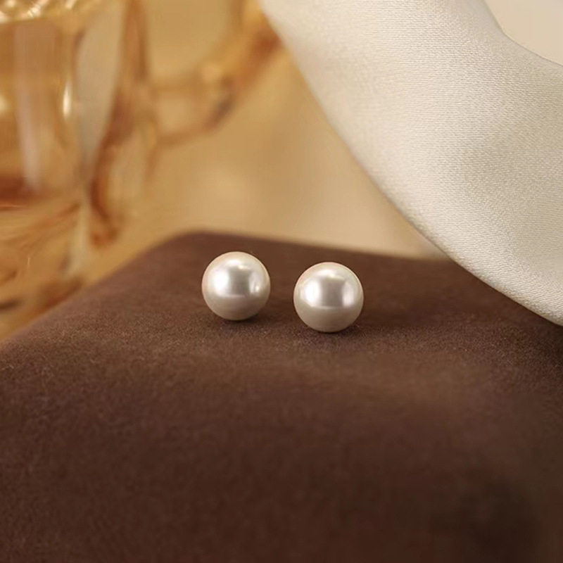 fever同款珍珠耳钉999纯银施家耳环2025新款爆款高级轻奢正圆耳饰